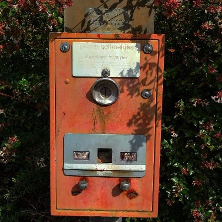 Postzegelboekjesautomaat uit de jaren 70 afkomstig van de hoek Samarialaan/Judealaan (Vlokhoven)