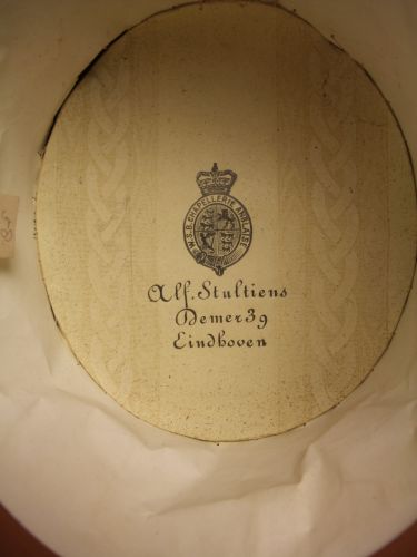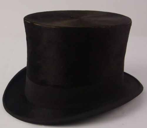 Hoge hoed, kleur: zwart, gevoerd met papier. Binnenzijde tekst: Alf. Stultiëns Demer 39 Eindhoven + logo W.S.B. Chapellerie Anglaise