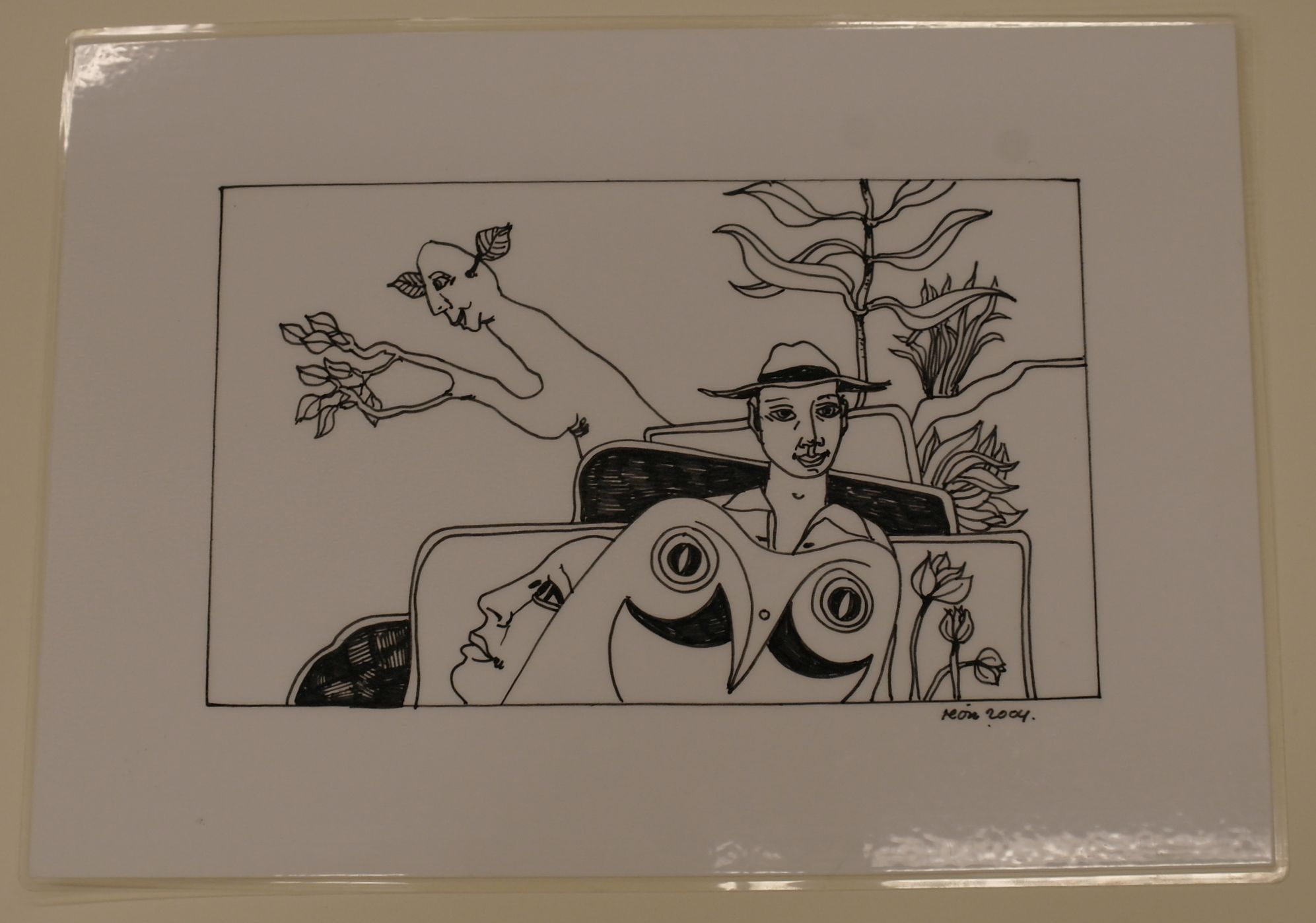 Zonder titel - 2004, pentekening in zwart/papier, 210 x 297 mm, gesigneerd en gedateerd r.o.: león. 2004