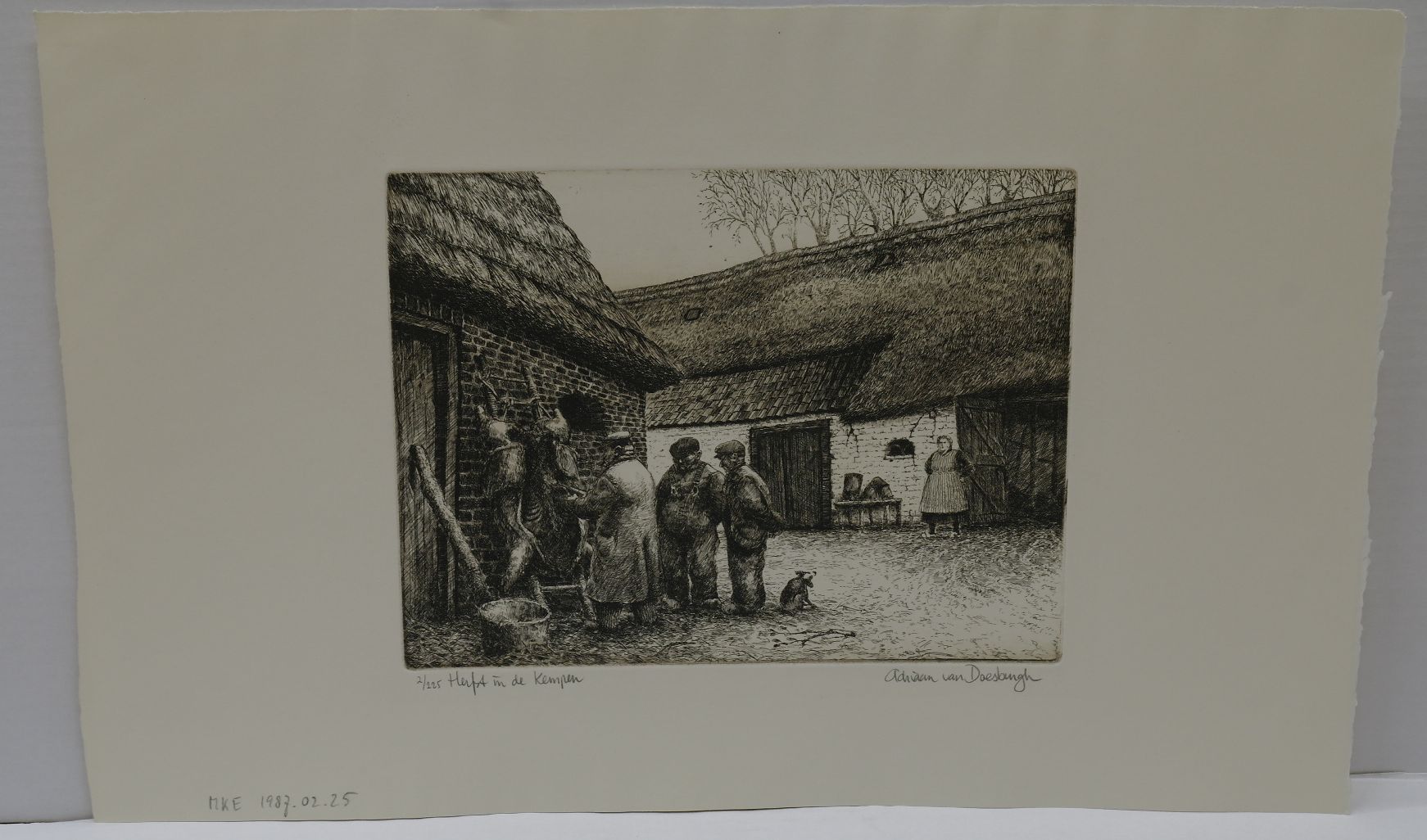 Herfst in de Kempen - 1987, ets in zwart/papier (2/225), 208 x 273 mm, genummerd en geannoteerd in potlood onder plaat l.o.: 2/225 Herfst in de Kempen, gesigneerd in potlood onder plaat r.o.: Adriaan van Doesburgh In passepartout