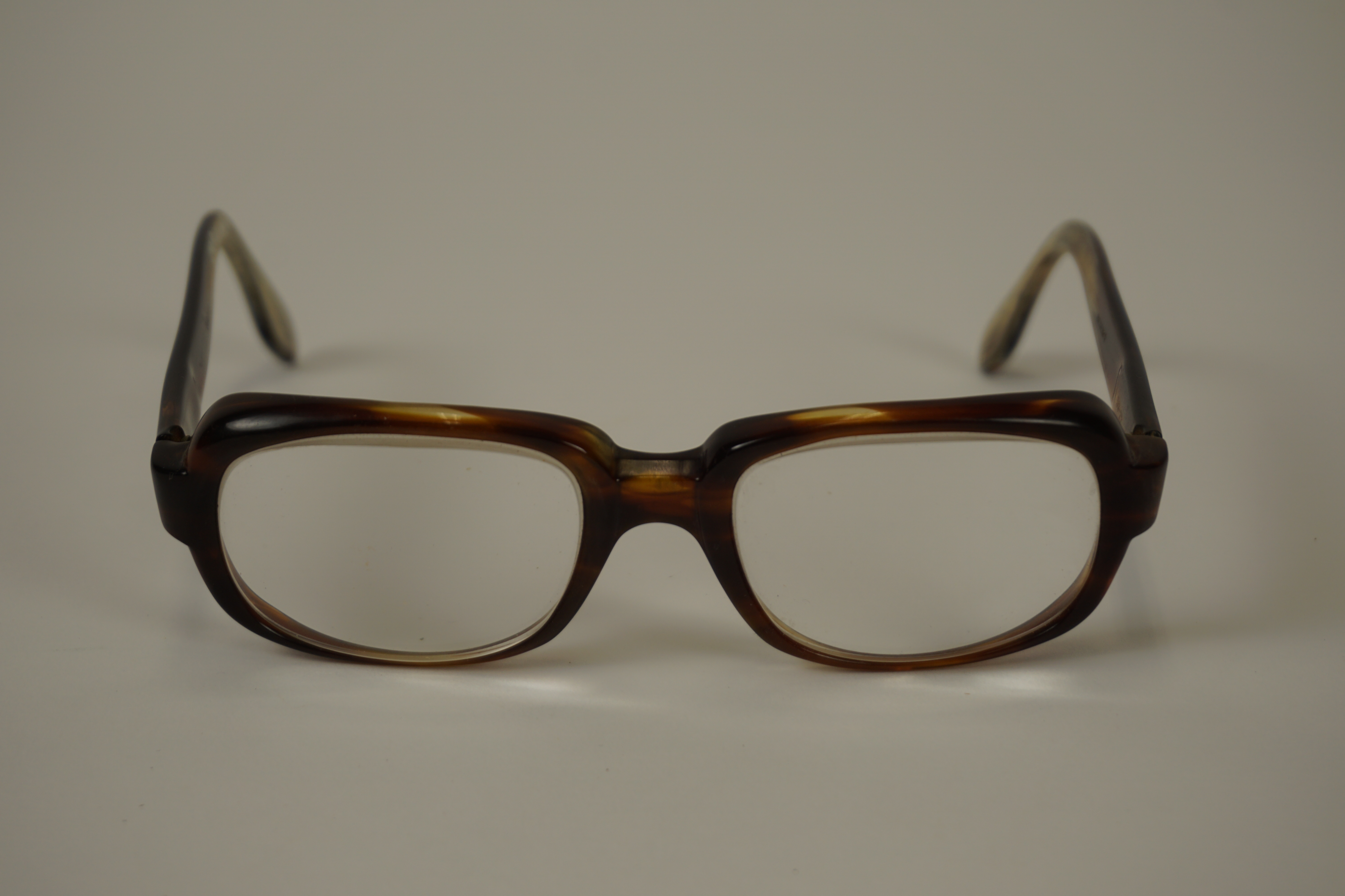 Bril - 1e t/m 3e kwart van de 20e eeuw, materiaal: celluloid en glas, afmetingen: 4,5 x 14,5 x 13,5 cm, bril met hoekig-ovalen glazen, montuur van celluloid, opschrift op de brilpoot 'Regency 50-22'