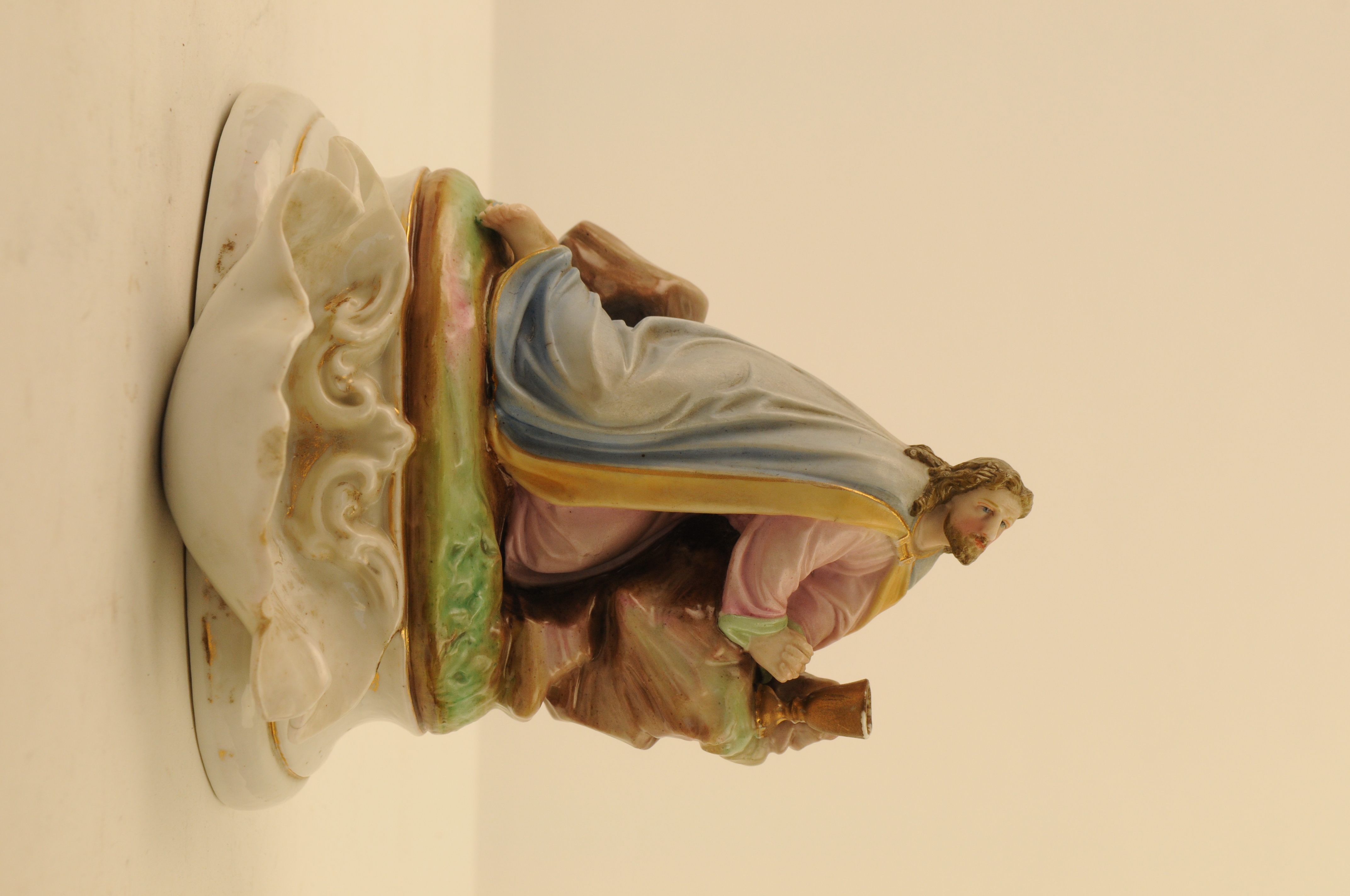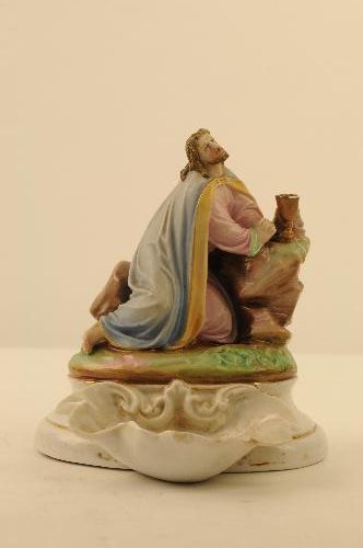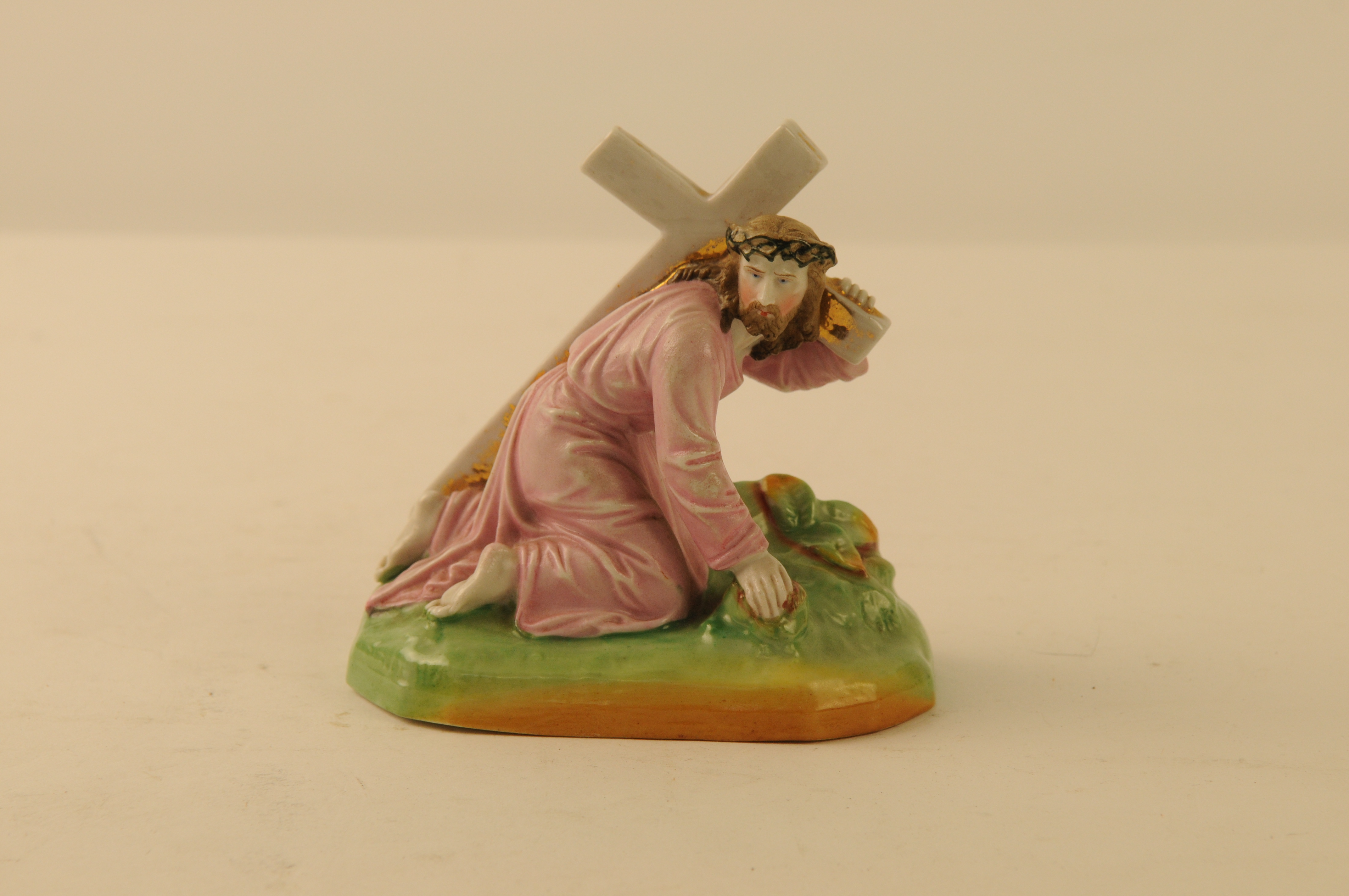 Een klein beeldje vervaardigd in Andenne (volgens de aanwinstenlijst uit 1972 ' Brussels' ) biscuit-porselein, dat de val van Christus onder het kruis voorstelt
