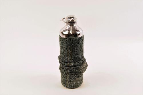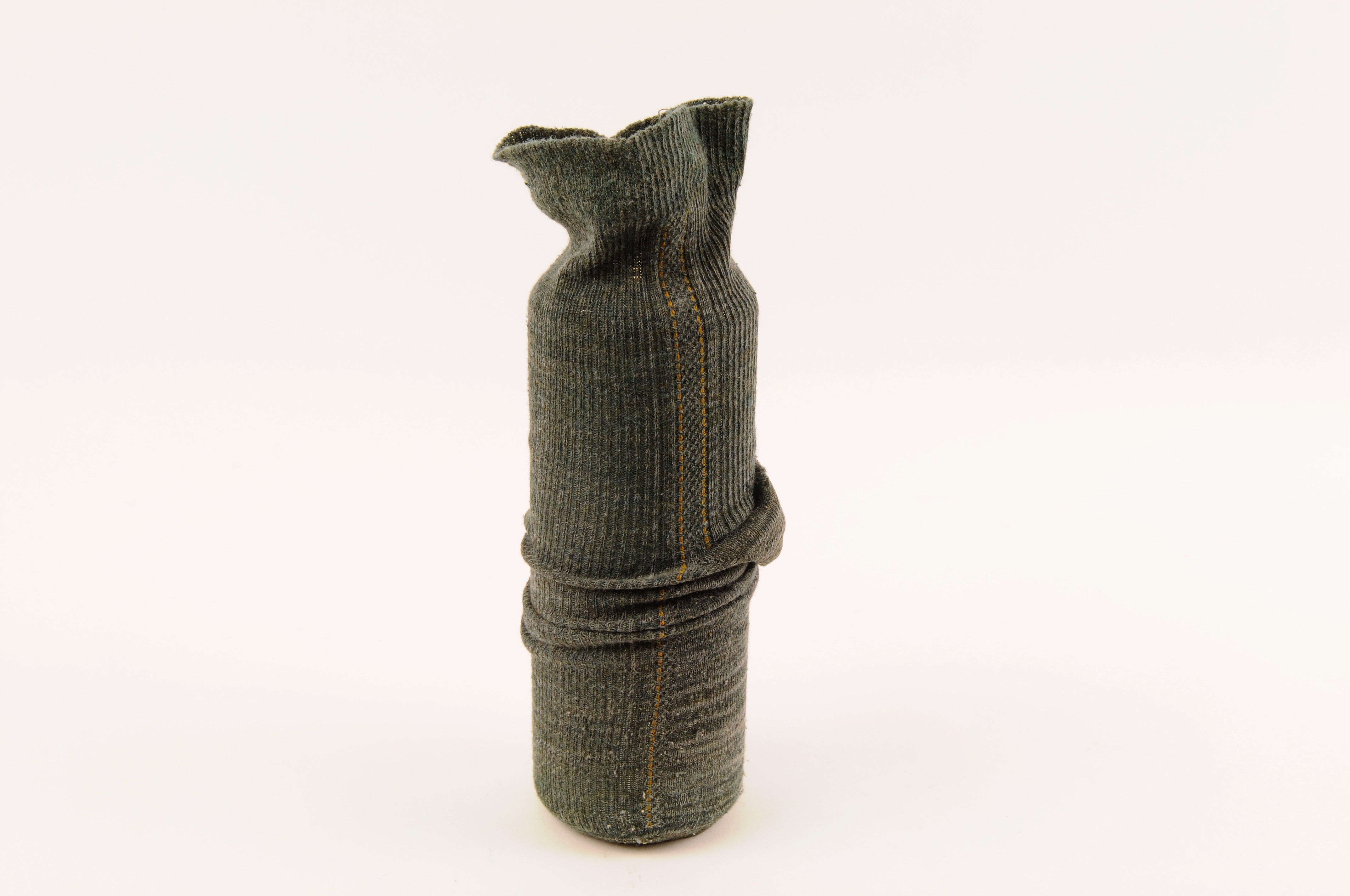Cylindrische stalen bedkruik met een sok eromheen