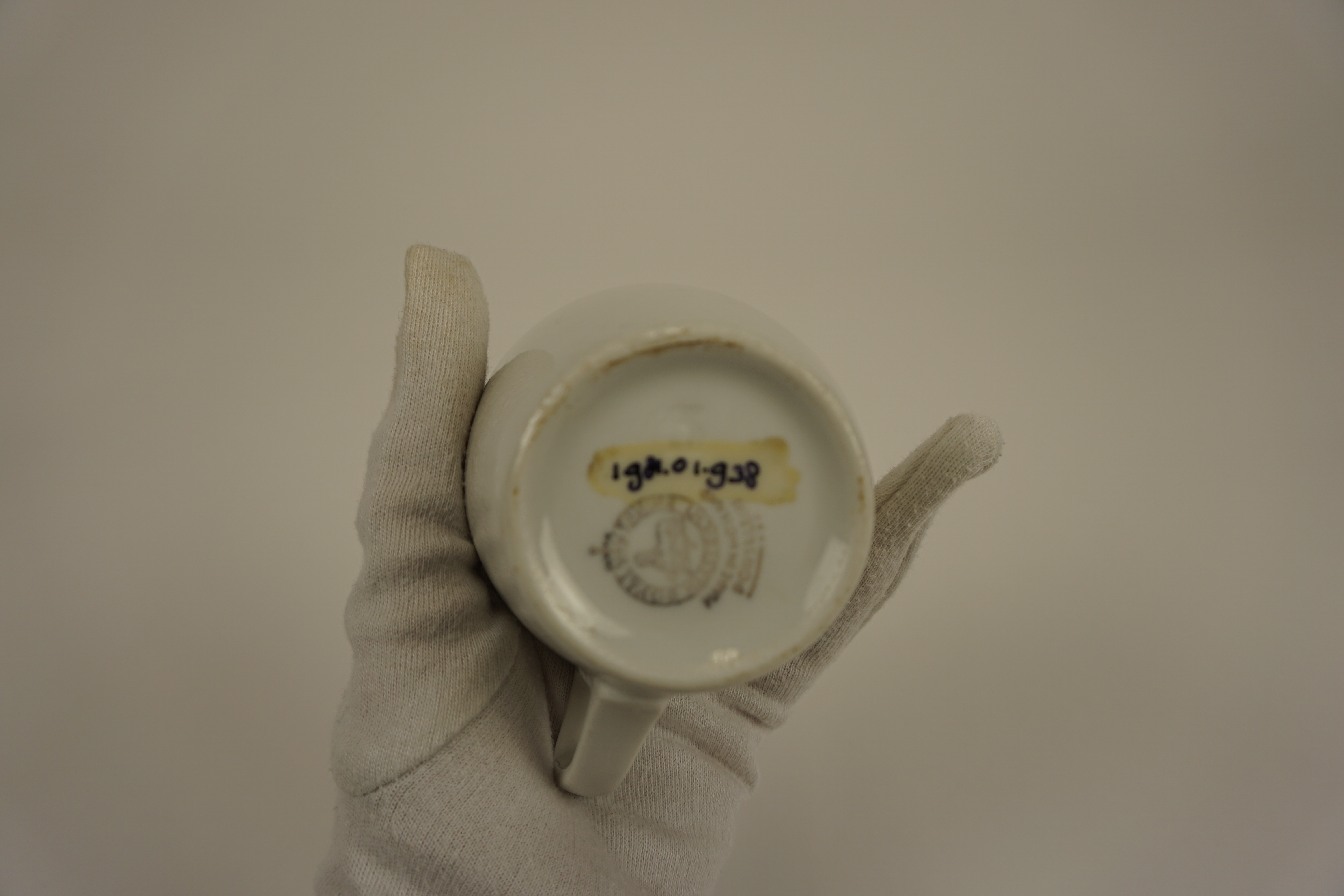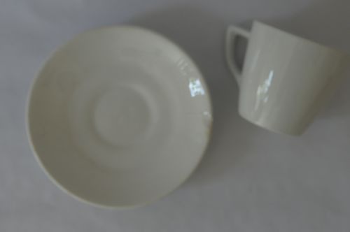 kop gemerkt: ROYAL SFINX MAASTRICHT MADE IN HOLLAND PORSELEIN onder de sfinx: P. Regout blindstempel: 3 schotel: gemerkt: Societé Ceramique Maestricht MADE IN HOLLAND n.b.: kop en schotel horen niet bij elkaar !