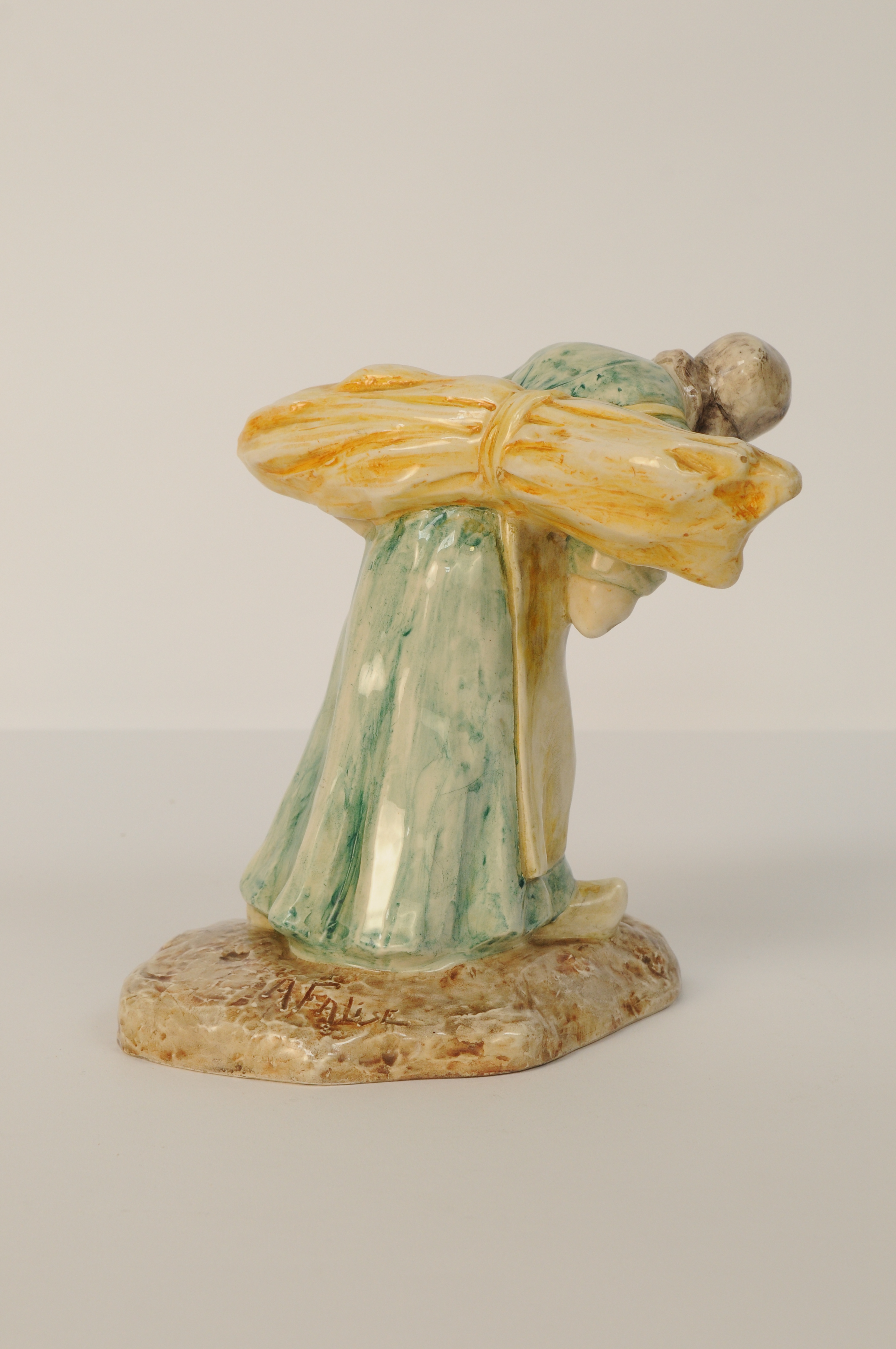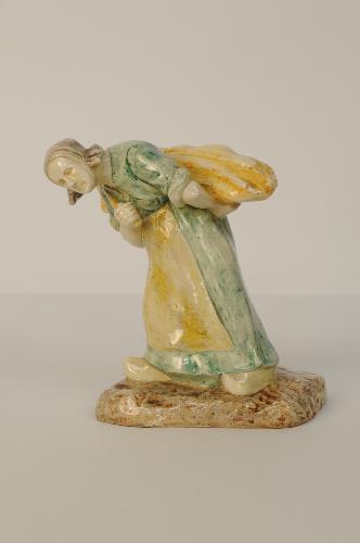 Houtsprokkelaarster - 1905, geglazuurd aardewerk, gepolychromeerd, 22 x 18 x 22 cm, gesigneerd: A. FALISE, gemerkt: Plateelbakkerij Haga Purmerend
