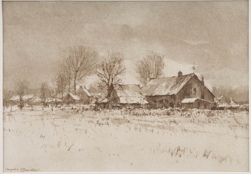 Winterlandschap in Tongelre - 1982/1984, sepia/papier, 250 x 355 mm, gelocaliseerd en gesigneerd l.o.: Tongelre F. Manders