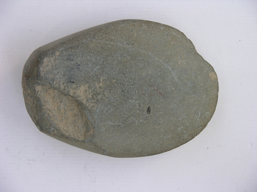 Geslepen natuurstenen bijl van westeuropees type. Gebruikte steensoort is een soort kwartsiet. Vorm van de bijl is enigszins rond. De bijl is aan de voorzijde (snijvlak) en de achterzijde (schachting) beschadigd. Datering: Midden - Neolithicum tot Laat-Neolithicum (3200 - 2000 v. Chr) Bijl draagt het opschrift K 20