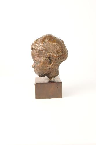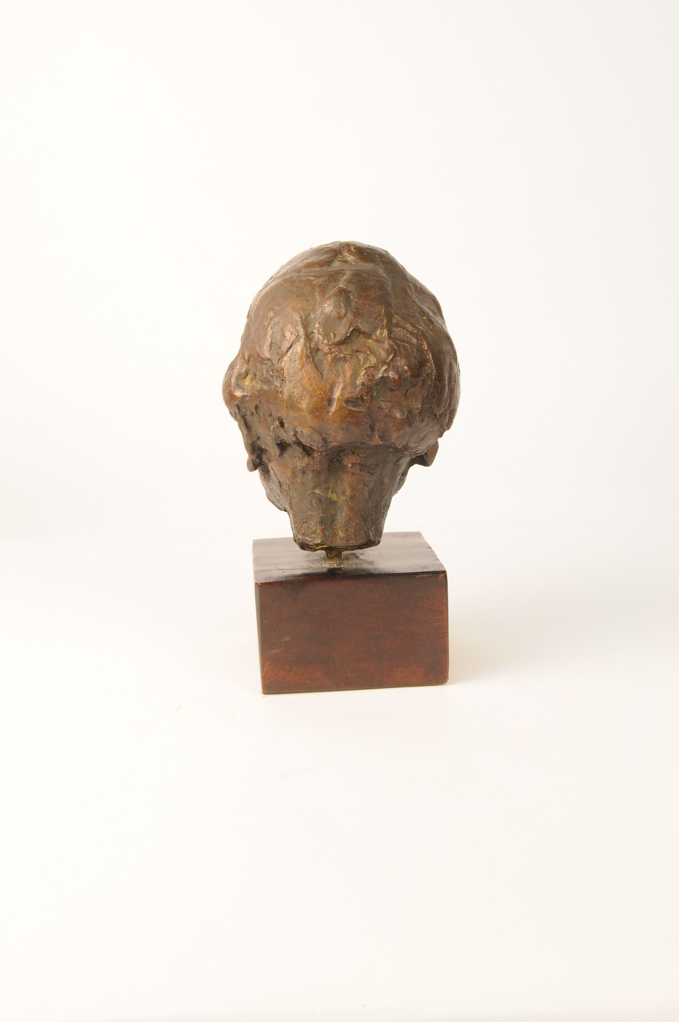 gesigneerd en genummerd l.a.: Oddens 2/3 gegoten bij A cire perdue bronsgieterij M.N.R. Joosten te Soest sokkel, mahoniehout, 7 x 12 x 12 cm schenking van de Stichting Vrienden van Museum Kempenland Eindhoven tijdens vriendenavond november 1995