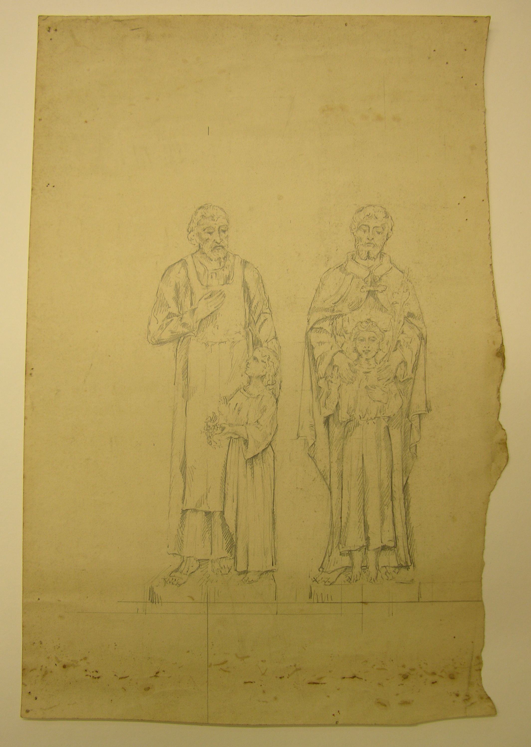 H. Jozef en H. Alphons de Ligori /a.z.: Zittende H. Maria met Kind - z.j., potlood/papier, 477 x 320 mm, ongesigneerd Ongesigneerd. Hubert van Melick was, na beëindiging van atelier Custers in dienst van Matthijs Coolen