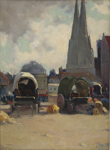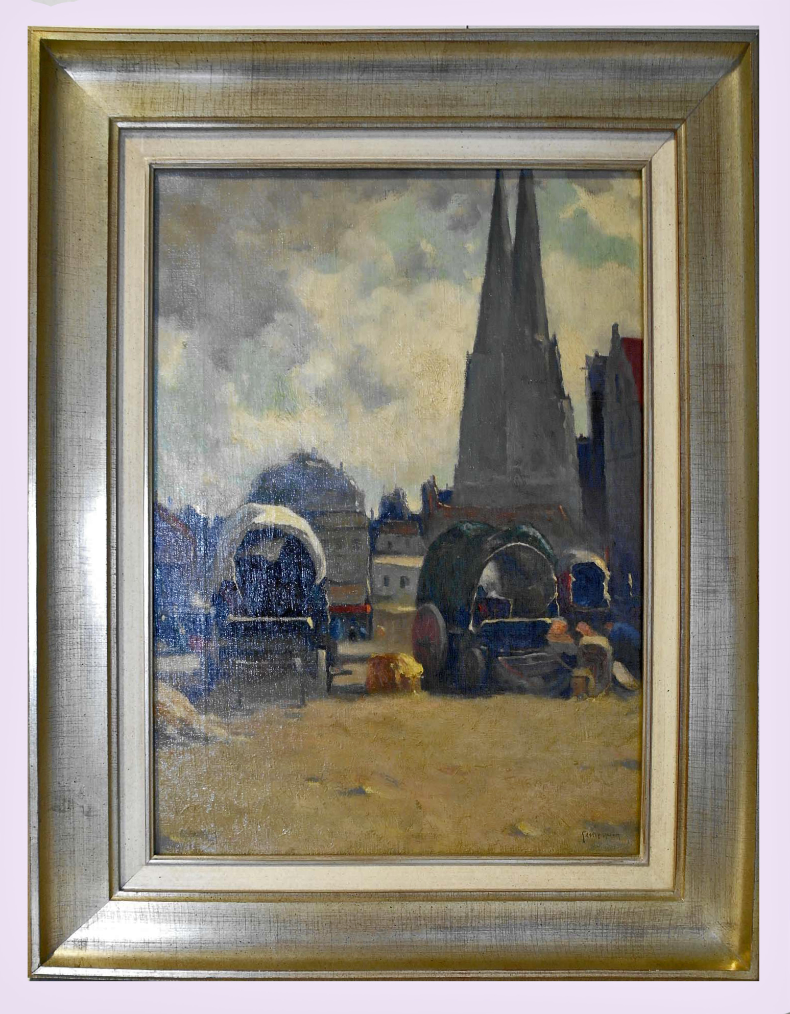 Markt met Sint-Catharinakerk te Eindhoven – omstreeks 1917, olieverf/doek, 56 x 41 cm, gesigneerd r.o.: Castle Keith