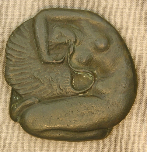 Voorzijde: Leda met de zwaan (Zeus in metamorphose), van voorzijde gezien. Keerzijde: Leda met de zwaan (Zeus in metamorphose), van achterzijde gezien. Opschrift Positie: keerzijde Opschrift Type: monogram Opschrift Inhoud: 19 PK 67 Opschrift Transliteratie: Vereninging voor Penningkunst 1967 Productie reden: tweede penning van de Vereniging voor Penningkunst, 1967