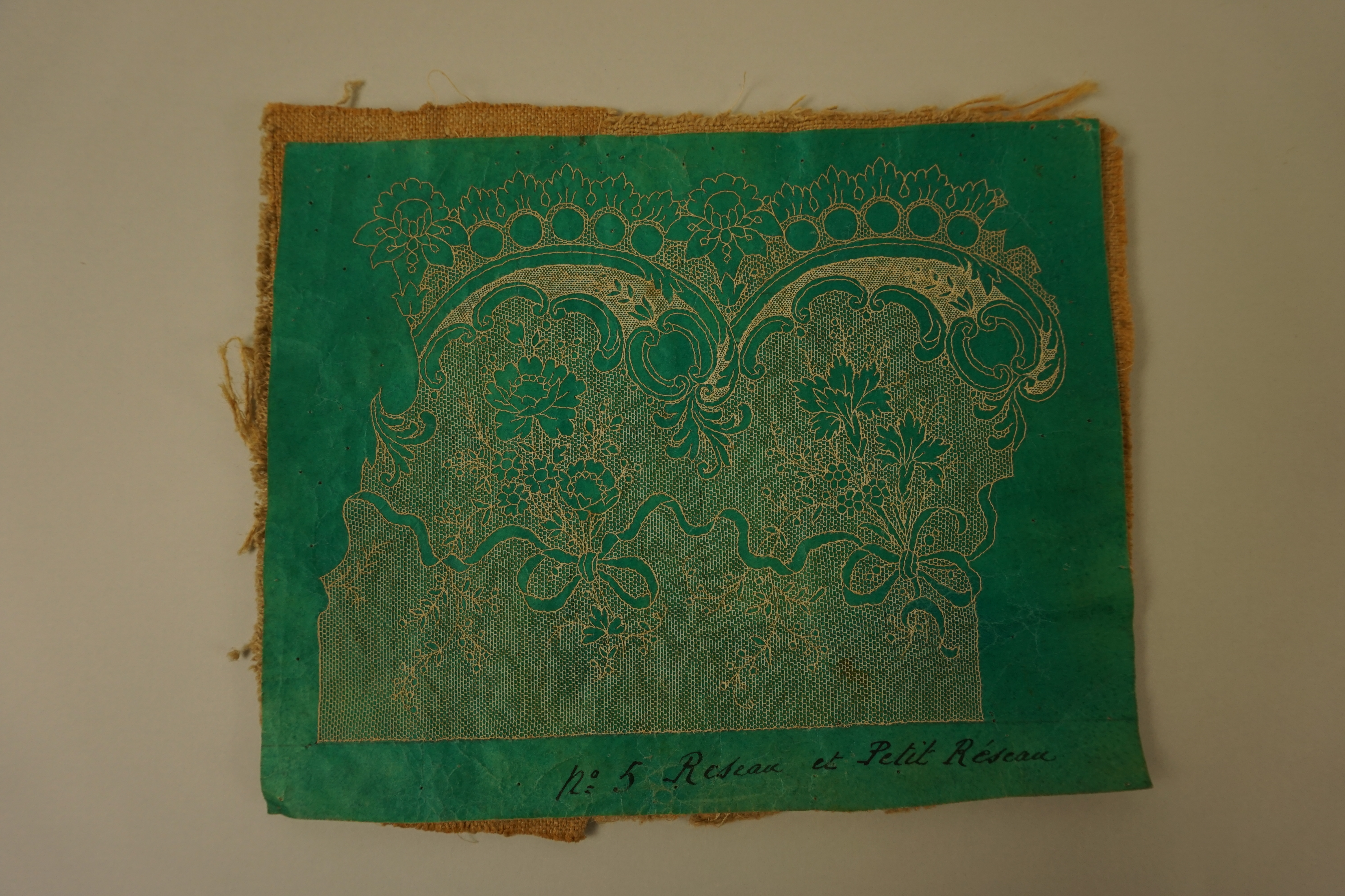 kleur: groen/ecru model: Réseau et petit réseau nr 5 patroon genaaid op jute