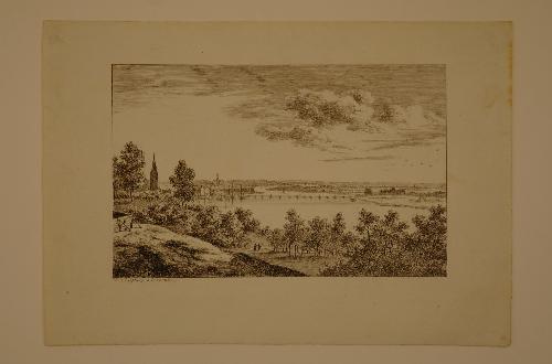 Gezicht op de stad, met zichtbaar de Schipbrug. gesigneerd l.o.: Bagelaar f. geannoteerd l.o.: A. Schelfhout ad viv. delin. H&L (T. Hippert en J. Linnig) Le Peintre-graveur hollandais et belge du 19me siècle, 1879 nr. 126 op achterzijde geen stempels