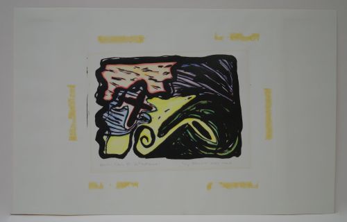 gesigneerd, gedateerd en geannoteerd in potlood onder voorstelling l.o.: Gaston Klein '85 litho/Aquarel genummerd en getiteld in potlood onder voorstelling r.o.: 5/13 BIGLESS GOES TROJE in passe-partout gemeente nr. F 876