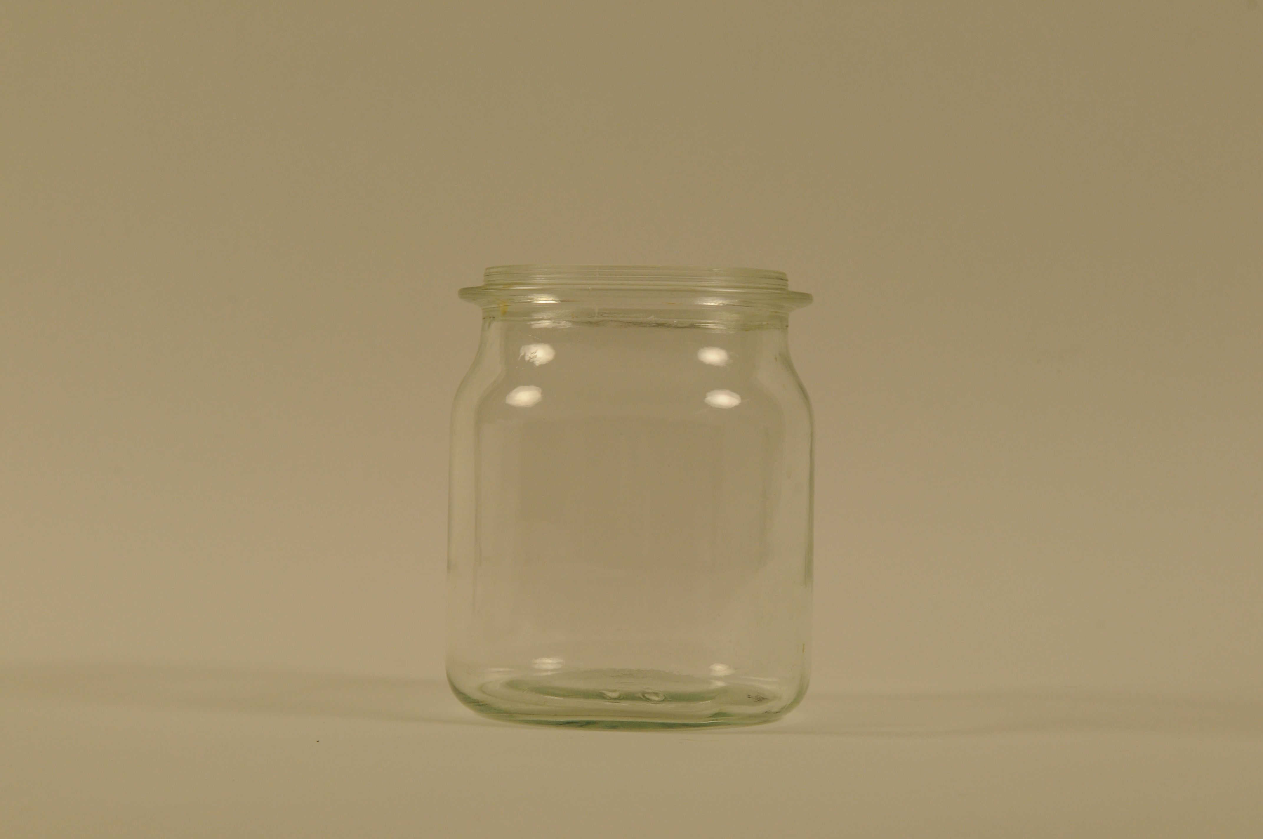 Weckfles met deksel - 3e kwart van de 20e eeuw, materiaal: glas, kleur: doorzichtig/kleurloos, afmetingen: 15 x 11 cm, op het deksel in reliëf het opschrift: 'alleen bruikbaar voor groefglazen', op opstaande glaswand het opschrift: 'VEGLA', op de bodem het opschrift: '1 Ltr.' Object is aan het MKE geschonken voor de tentoonstelling 'Vertel nog eens van ...