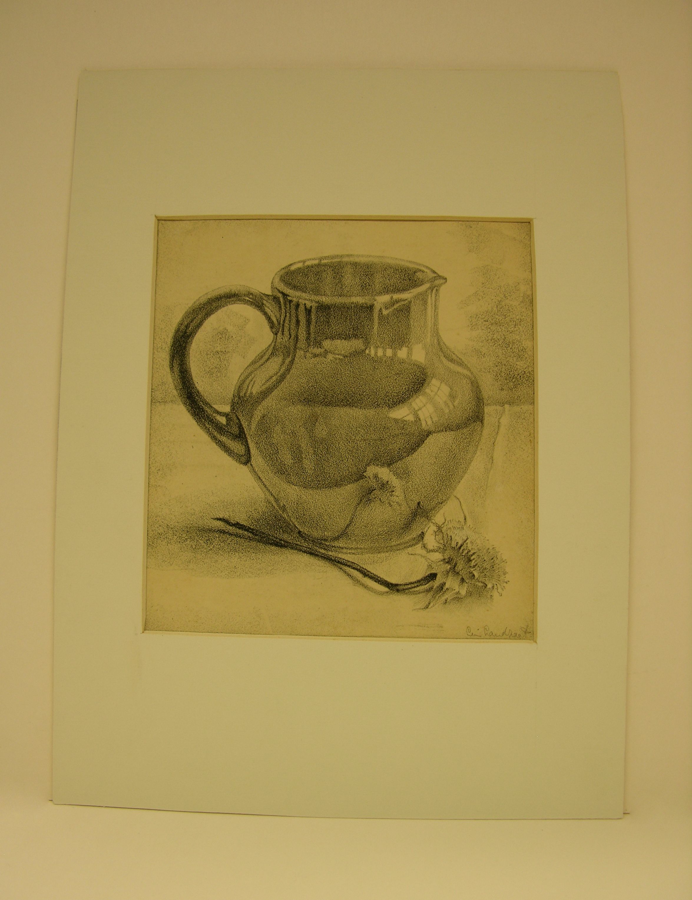 Len Bombeeck – Landzaat, Kannetje met bloem, - ca 1934/1935, litho/papier, 220 x 200 mm. Gesigneerd r.o.: L. Landzaat