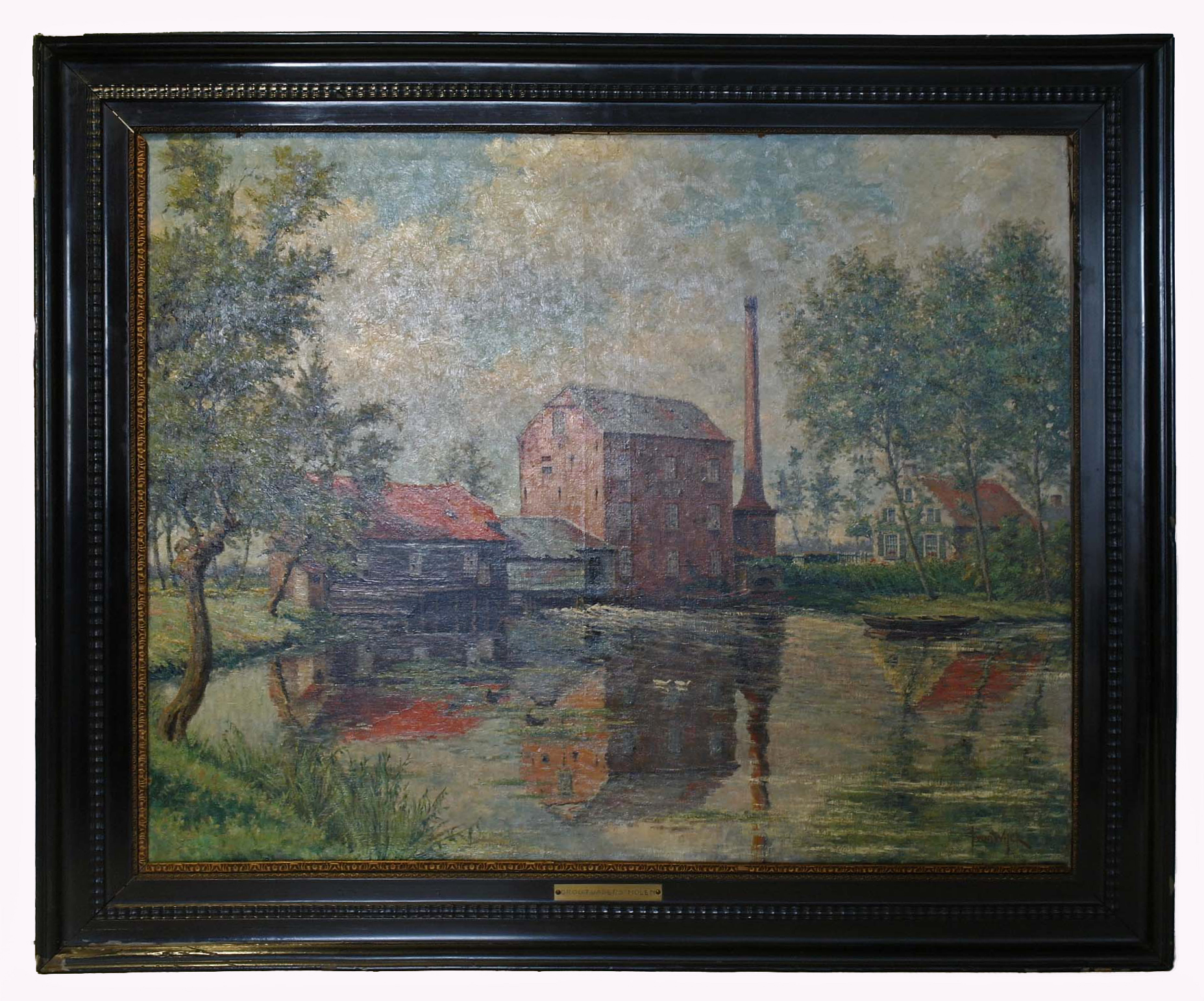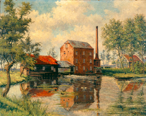 Woenselse watermolen (ook Grootvaders' Molen) - z.j., olieverf/doek, 80 x 100 cm, gesigneerd r.o.: J v Wijck