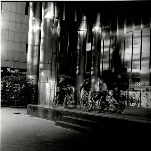 zonder titel [Enkele kinderen met fietsen op de Piazza te Eindhoven]