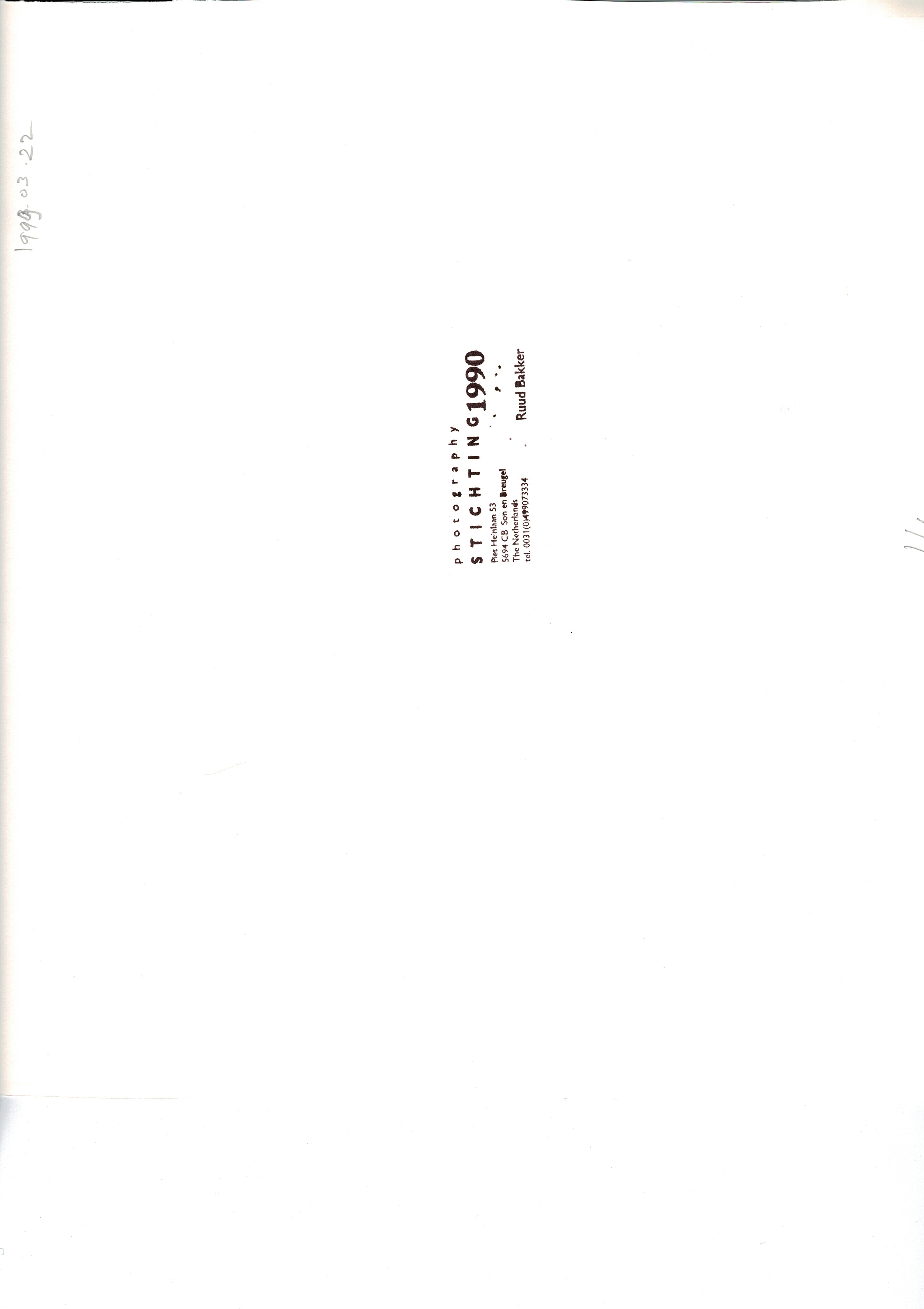 op a.z. stempel: Photography Stichting 1990 Piet Heinlaan 53 5694 CB Son en Breugel The Netherlands Ruud Bakker tel 0031(0)499073334