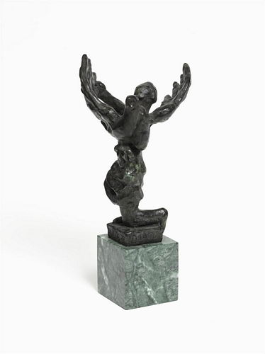 Hernomen voorontwerp voor het bronzen beeld op het voorplein van Scholengemeenschap Augustinianum te Eindhoven.