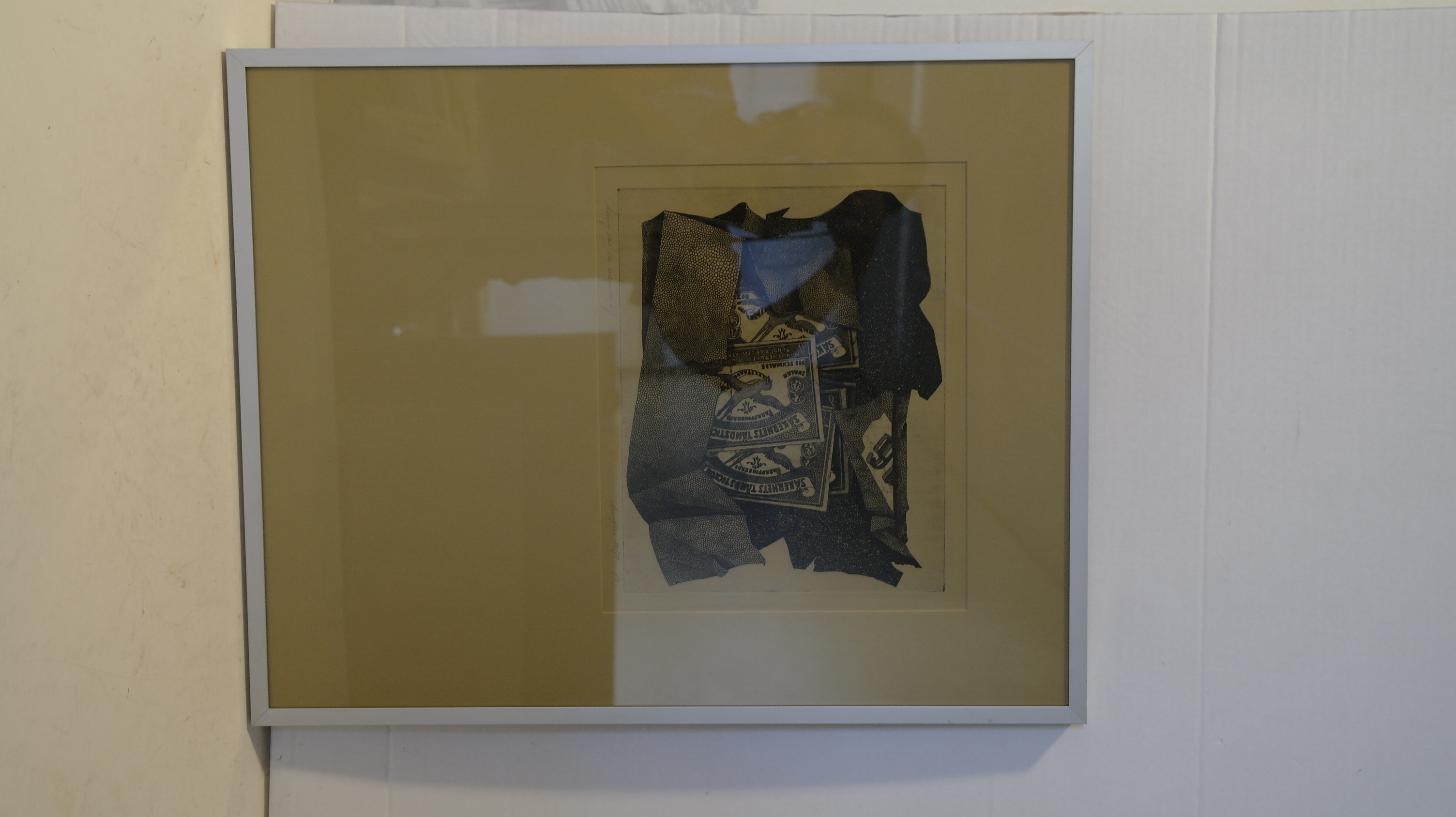 in lijst achter glas oud gemeente nummer F 369 gesigneerd in potlood onder plaat l.o.: henny van de nieuwenhof. getiteld (geannoteerd), genummerd en gedateerd in potlood onder plaat r.o.: lucifers 30/75 '74