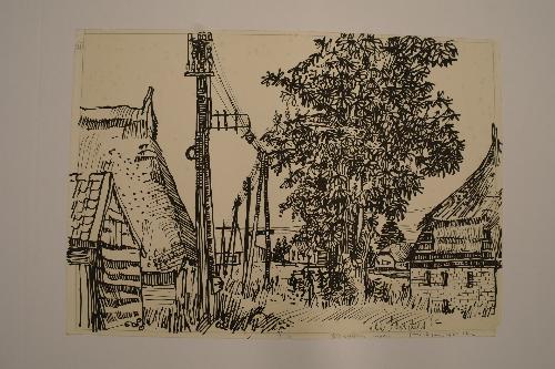 Dorpsgezicht - 1964, oostindische inkt/papier, 340 x 480 mm, gesigneerd en gedateerd r.o.: Har Sanders '64