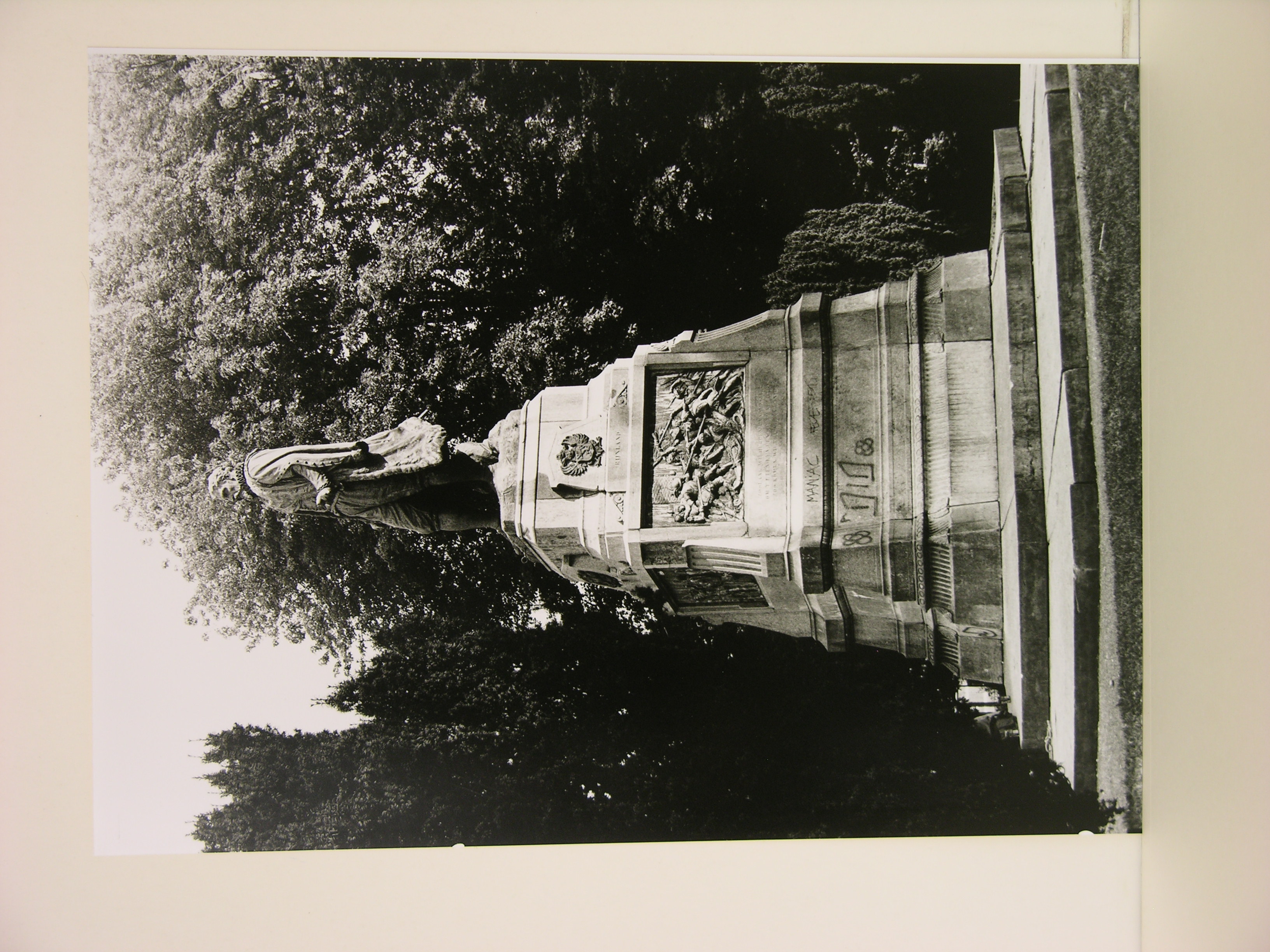 portret in staande houding van burgemeester P.A. van der Werff, uitgevoerd in brons naar ontwerp van Johan Philip Koelman (1818-1916) en Hugo Pieter Vogel (1834-1886), 1873/1884, Leiden, Van der Werffpark in passe-partout