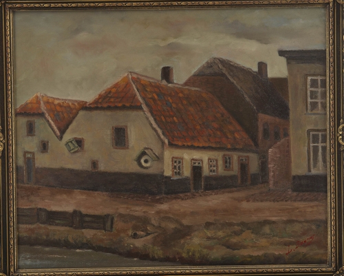 De Plekhoek te Eindhoven - 1937, olieverf/doek, 50 x 60 cm, gesigneerd r.o.: L. Baijens