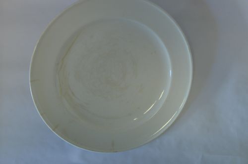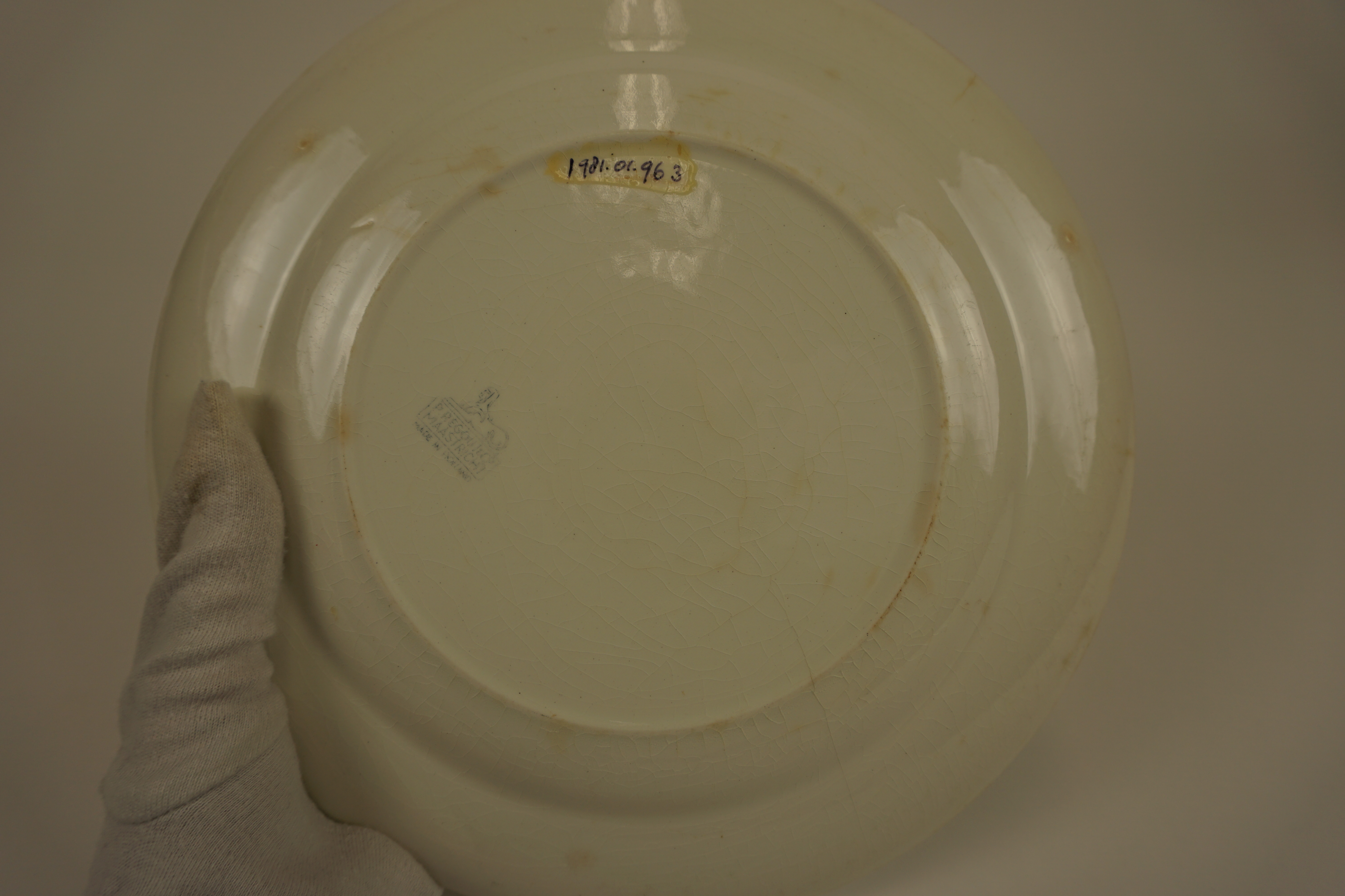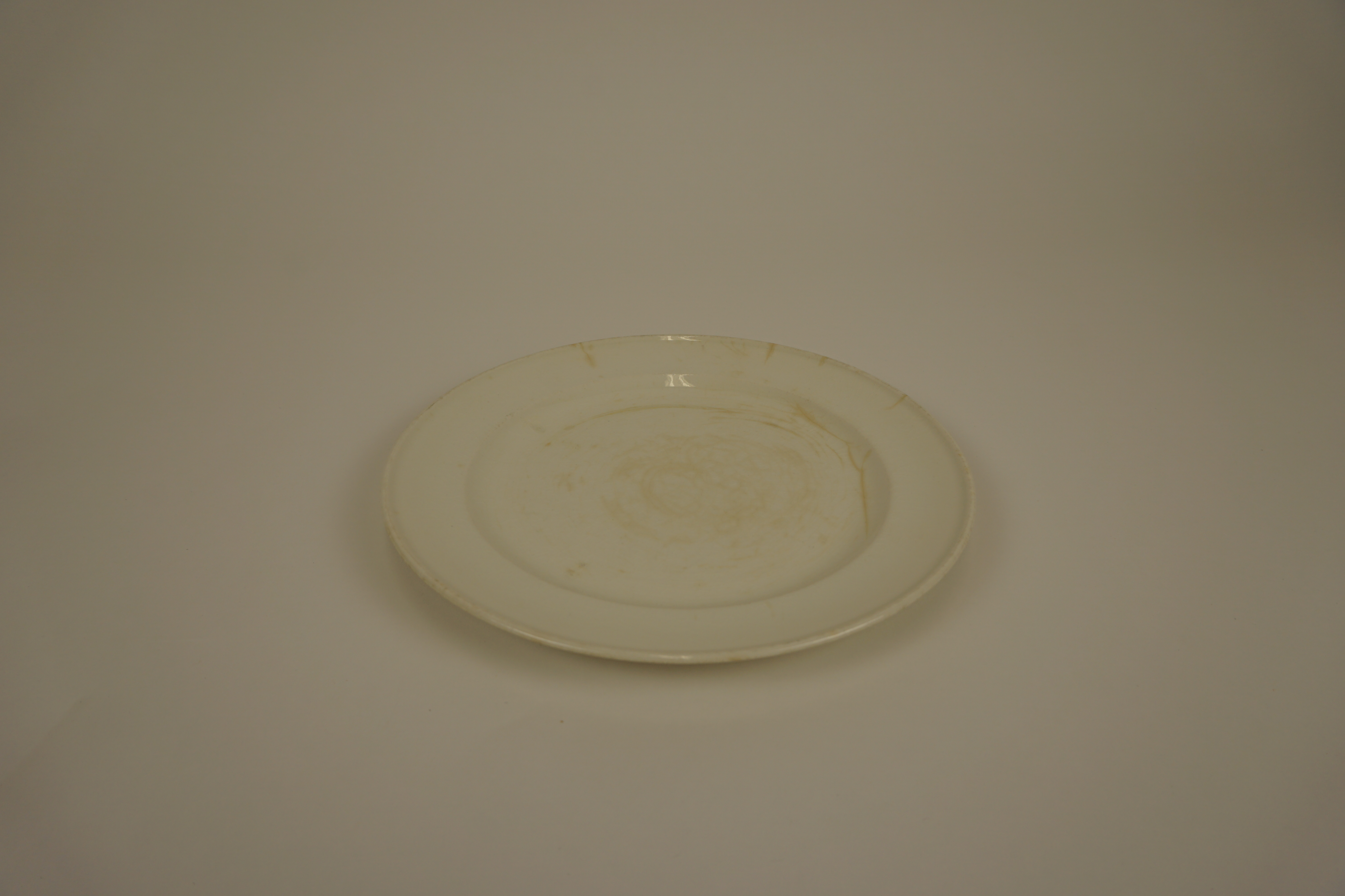 Bord - eerste helft van 20e eeuw, witbakkend geglazuurd aardewerk, afmetingen: 2 x 24,5 cm, op de onderzijde van de bodem gemerkt: 'P. Regout & Co Maastricht (in kader) Made in Holland', geen blindstempel gemerkt: P. Regout & Co Maastricht (in kader) Made in Holland geen blindstempel