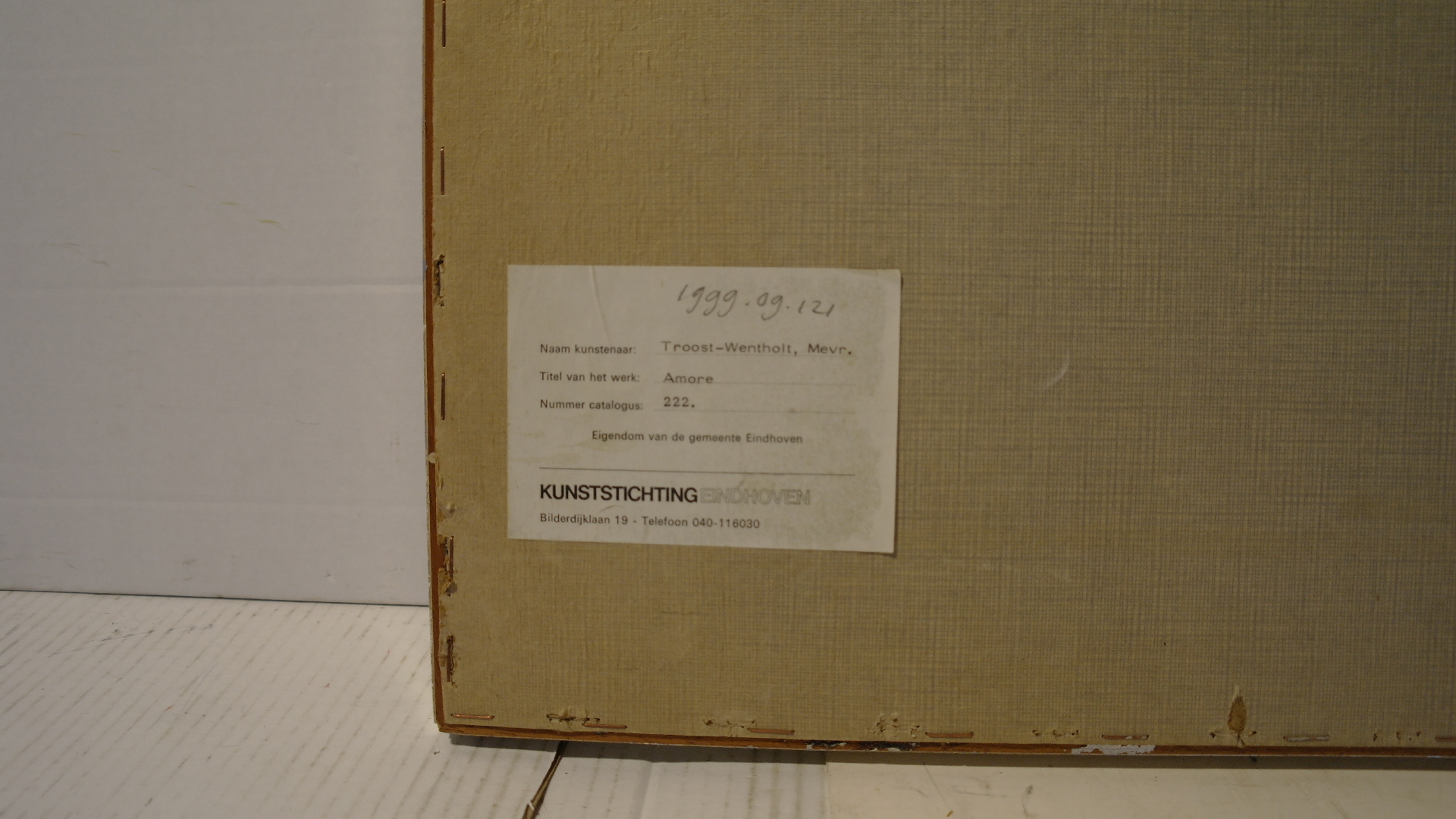 in lijst achter glas oud gemeente nummer 222 gesigneerd en gedateerd in potlood r.o.: a.Wentholt '69 In lijst achter glas