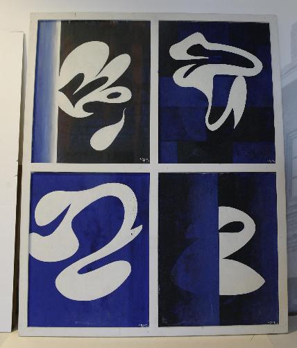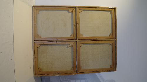 vier schilderijen van deze afmeting in één lijst alle schilderijen gesigneerd en gedateerd r.o.: J v Hest 66 Gemeentelijk inventarisnummer: F 166