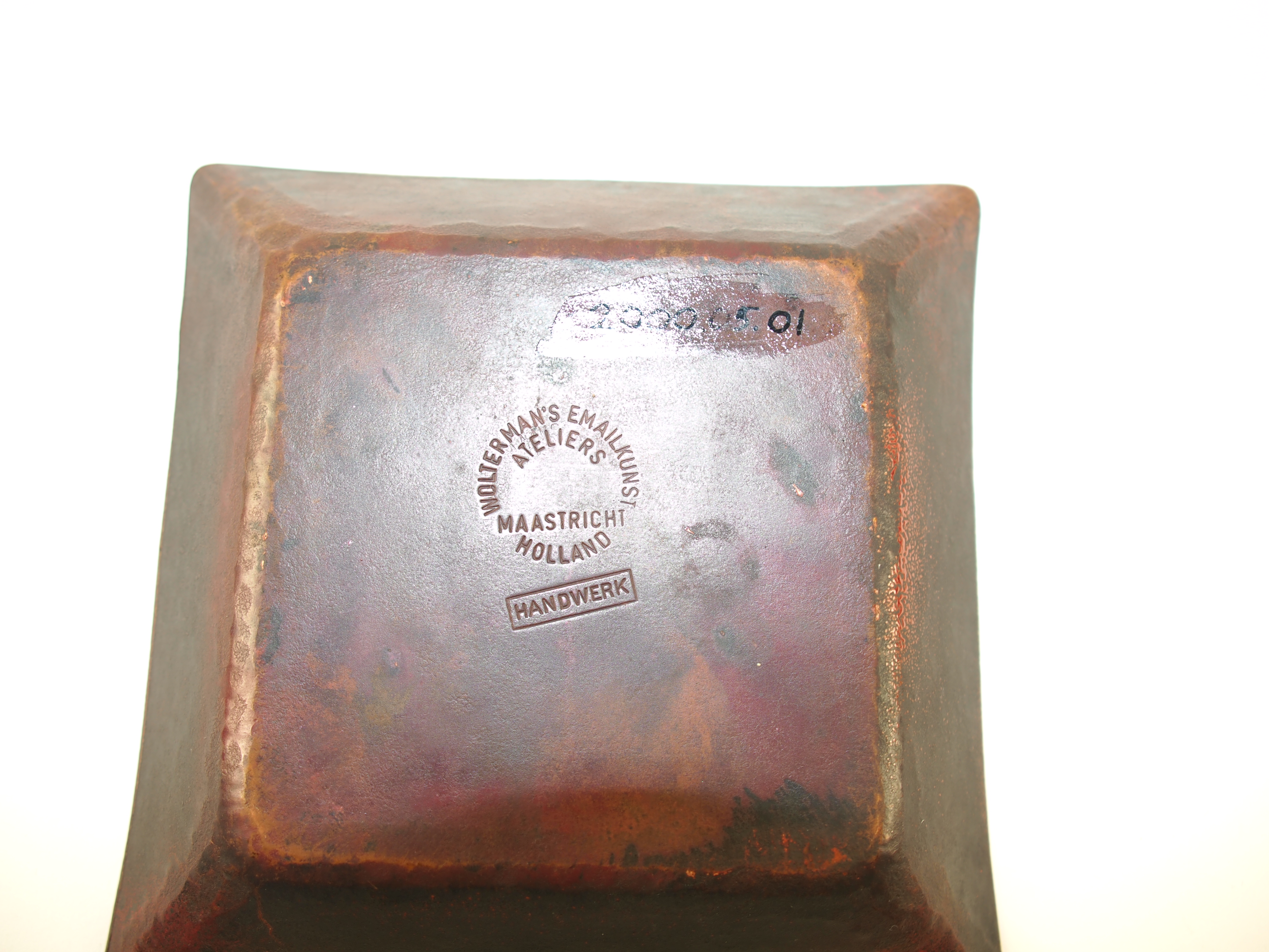 gemonogrammeerd r.o.: GW geannoteerd m.o.: N.V. EINDHOVENSCHE DRUKKERIJ en ED op a.z. ingedrukt stempel: Wolterman's Emailkunst Ateliers Maastricht Holland Handwerk