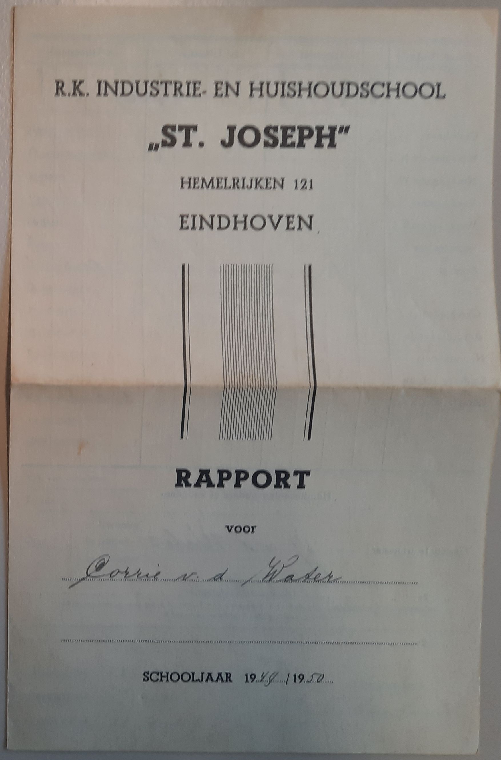Rapport op naam van C.M.H. v.d. Water van de R.K. Industrie- en huishoudschool "St. Joseph", Hemelrijken 121. Schooljaar 1949/1950