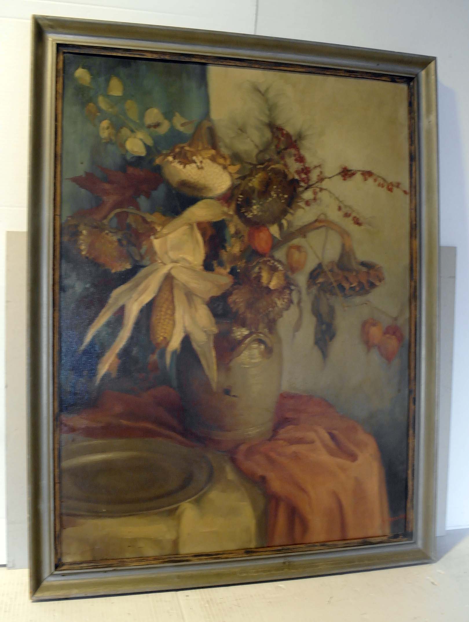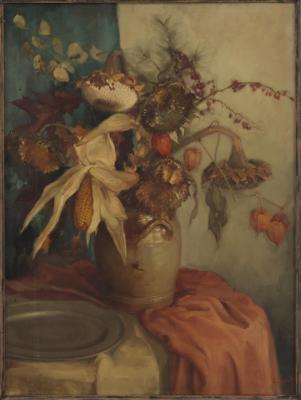 Stilleven met zonnebloemen en maiskolf - 1950, olieverf/doek, 80 x 60 cm, gesigneerd r.o.: Simons