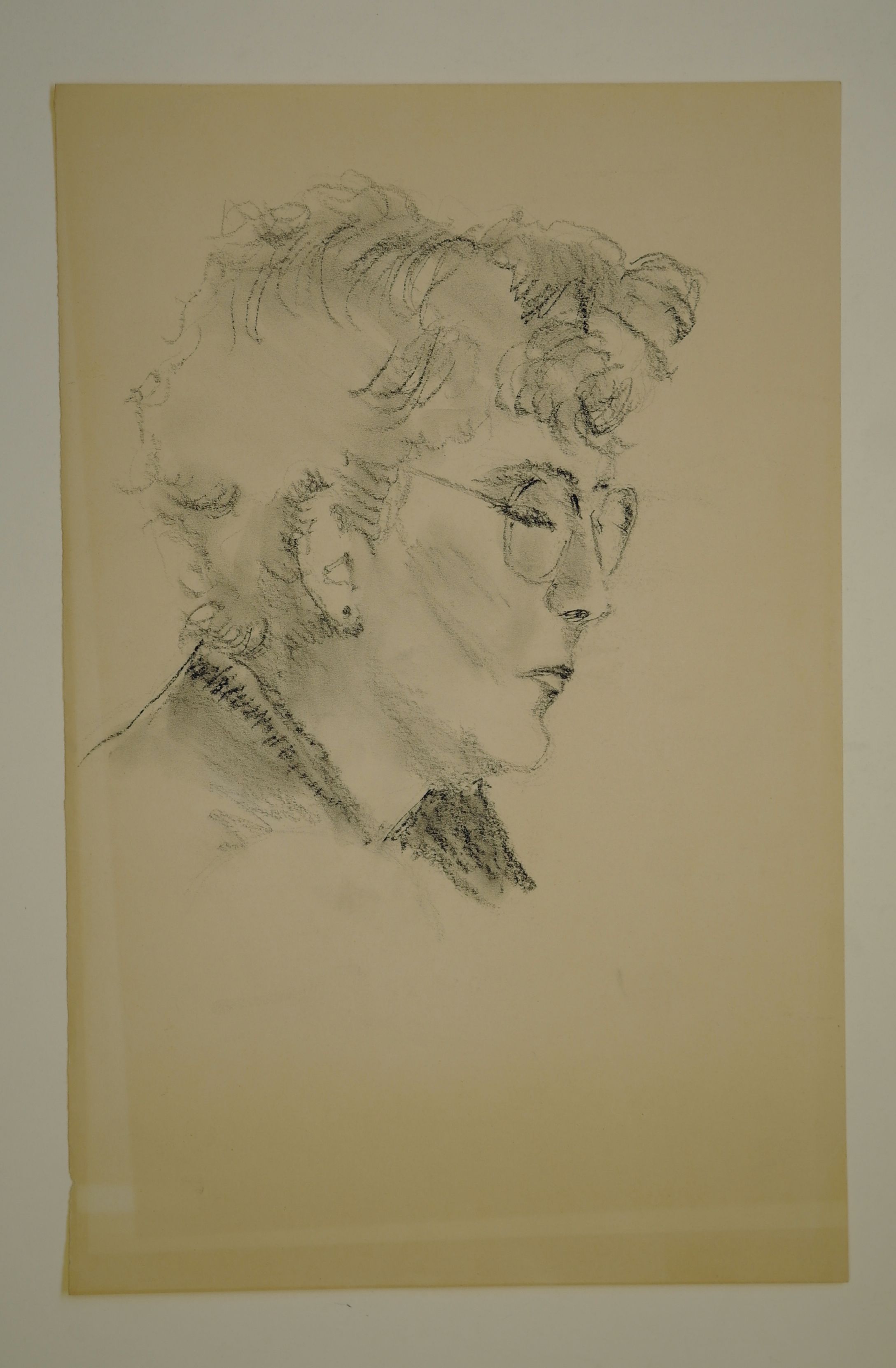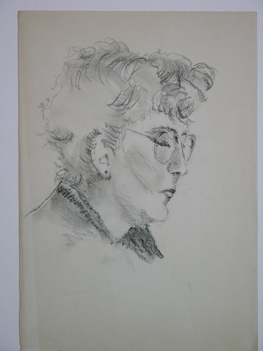 Vrouwenportret, - z.j., zwart contékrijt/papier, ongesigneerd, 500 x 325 mm