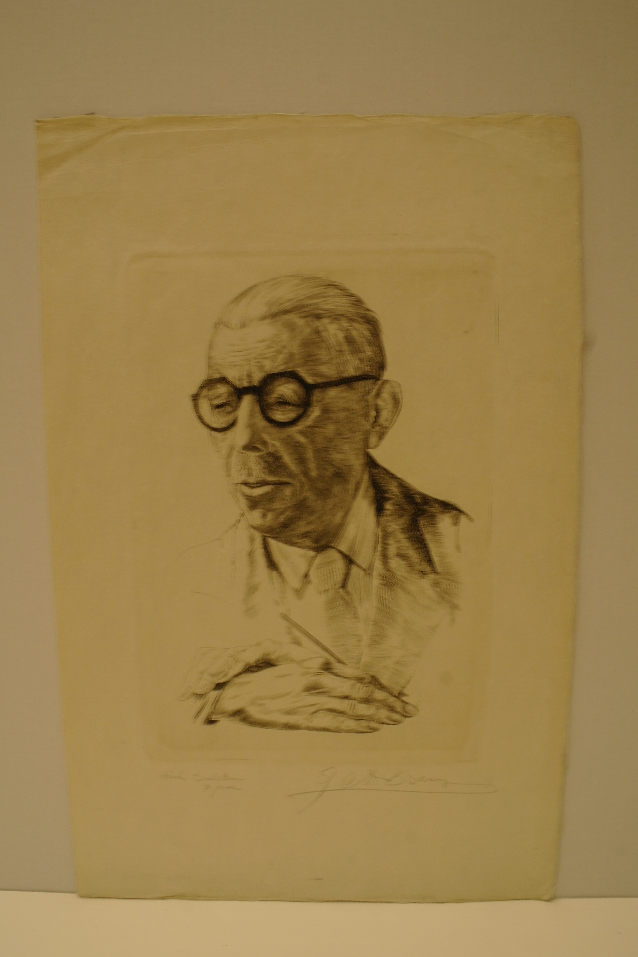 gesigneerd in potlood r.o. plaat: GC De Bruyne geannoteerd in potlood l.o. plaat: Dirk Baksteen 70 jaar