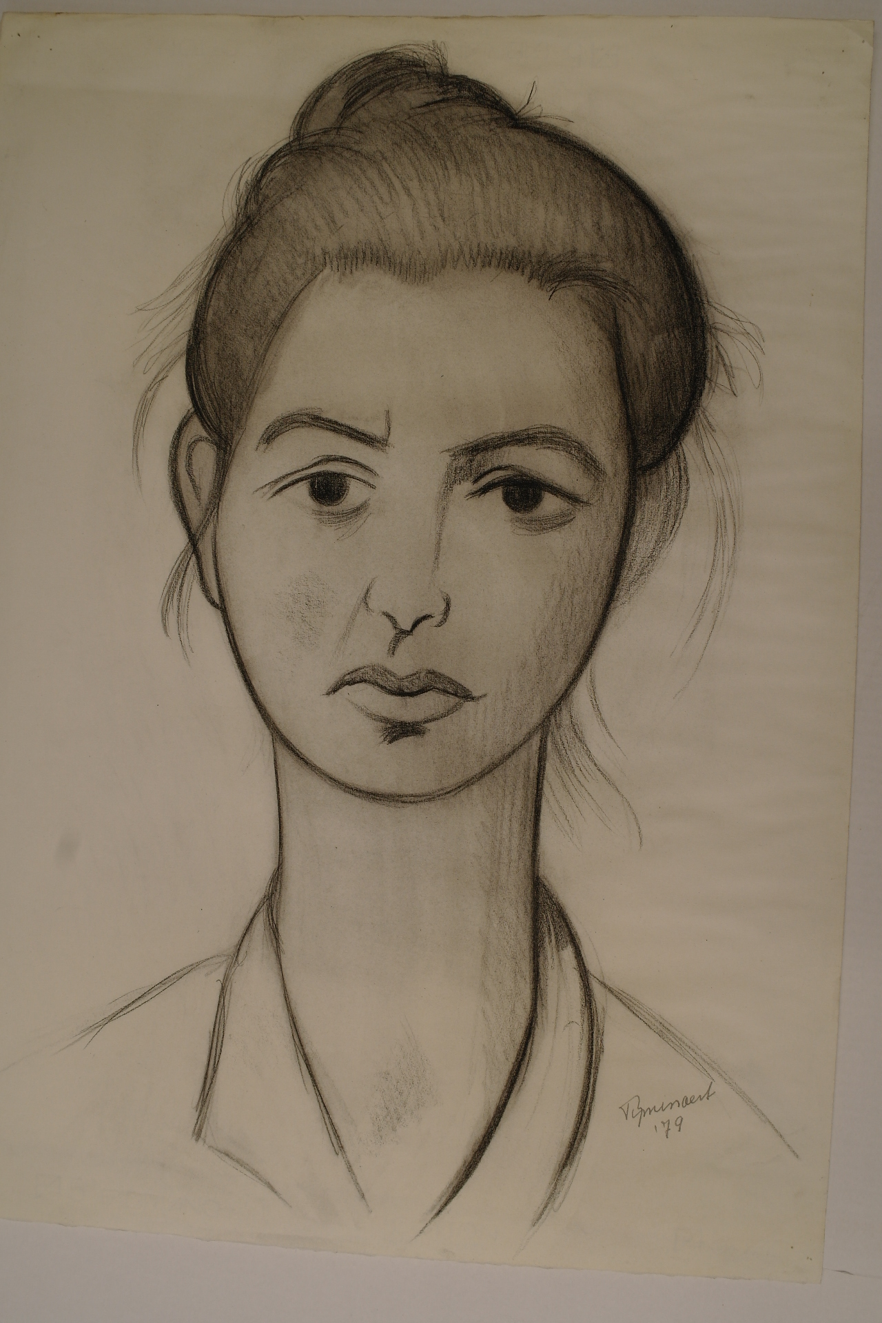 Portret van een vrouw - 1979, zwart krijt/papier, 660 x 420 mm, gesigneerd en gedateerd r.o.: PSmissaert '79