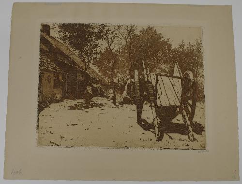Wagen op boerenerf in Brabant - 1892, ets in bruin/papier (No. 44), 178 mm x 237 mm, gemonogrammeerd en gedateerd in plaat l.o.: W.W.92, gesigneerd in potlood r.o. plaat: Witsen, genummerd in potlood l.o. plaat: No. 44 Wagen op boerenerf in Brabant - 1892, ets in bruin/papier (No. 44), 178 mm x 237 mm, gemonogrammeerd en ...
