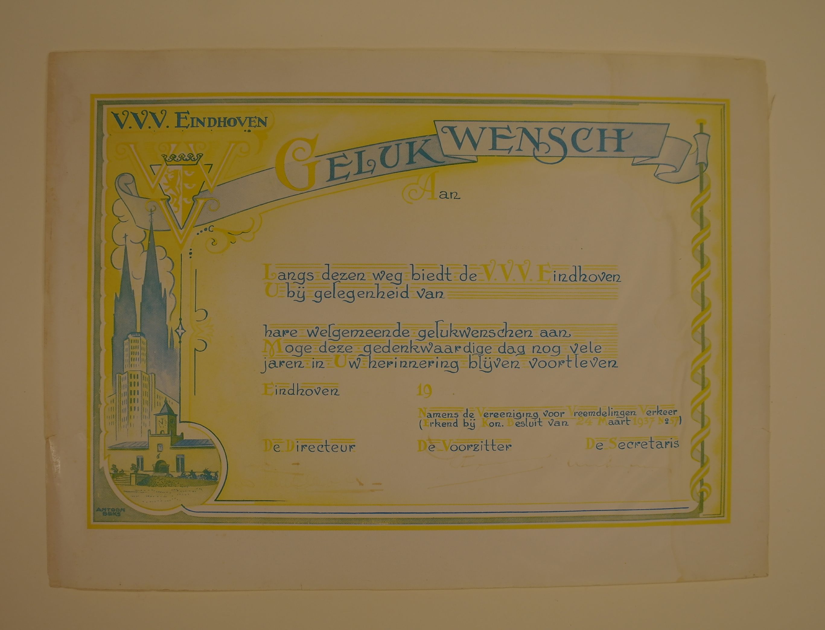 VVV Eindhoven Gelukwensch namens... bij gelegenheid van...