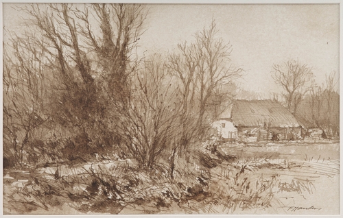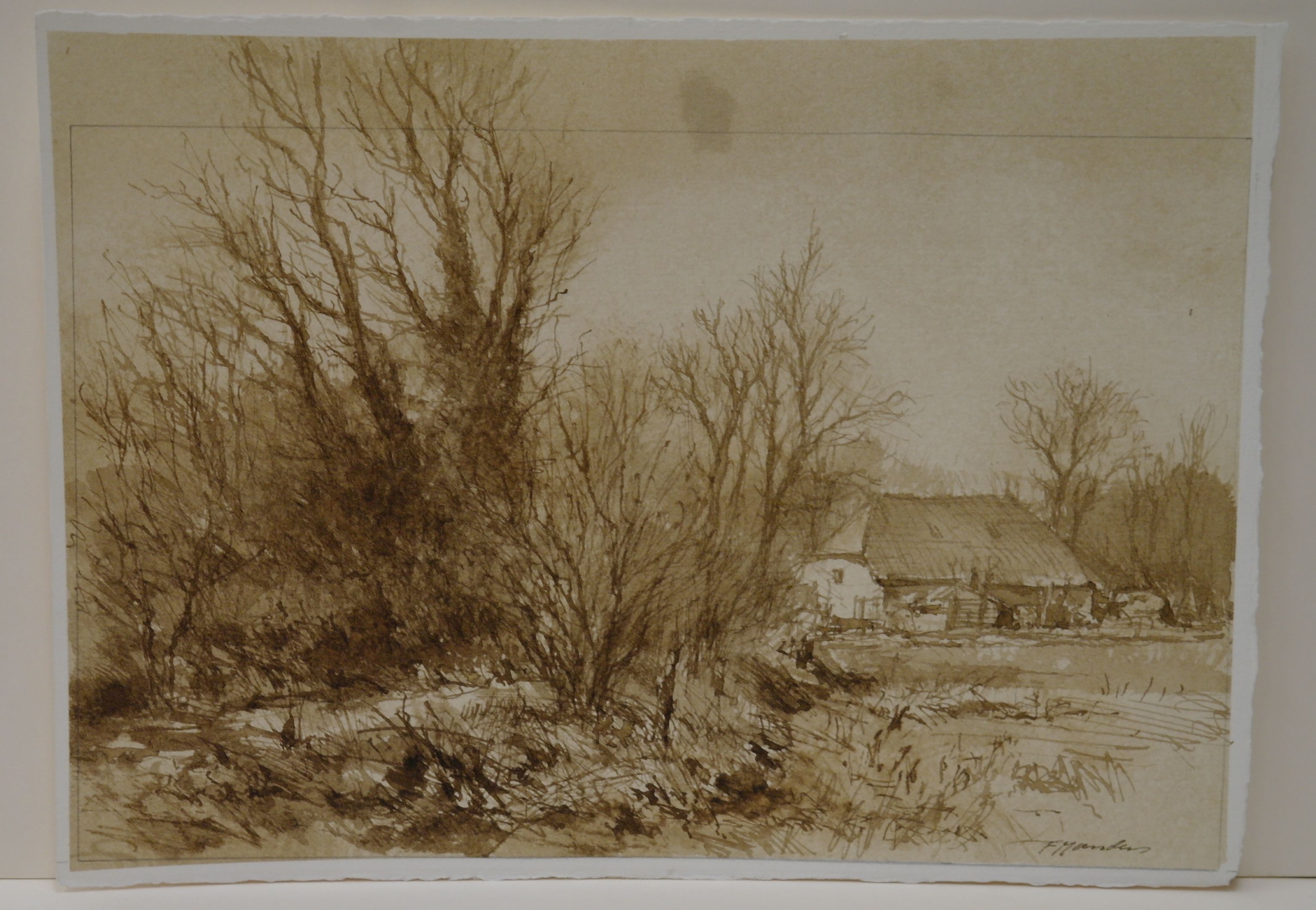 Landschap in Halder - 1982/1984, sepia/papier, 277 x 380 mm, gesigneerd r.o.: FManders