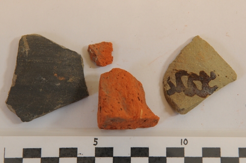 Scherfjes grijsbakkend en Zuidlimburgs aardewerk en brokje baksteen