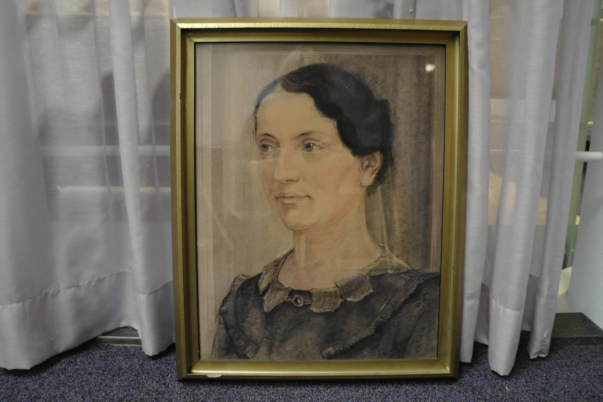 Mevr. Riet van Reuth-Janssen - omstreeks jaren 1930, zwart en gekleurd krijt/papier, 505 x 405 mm, gesigneerd r.o.: P. Peters