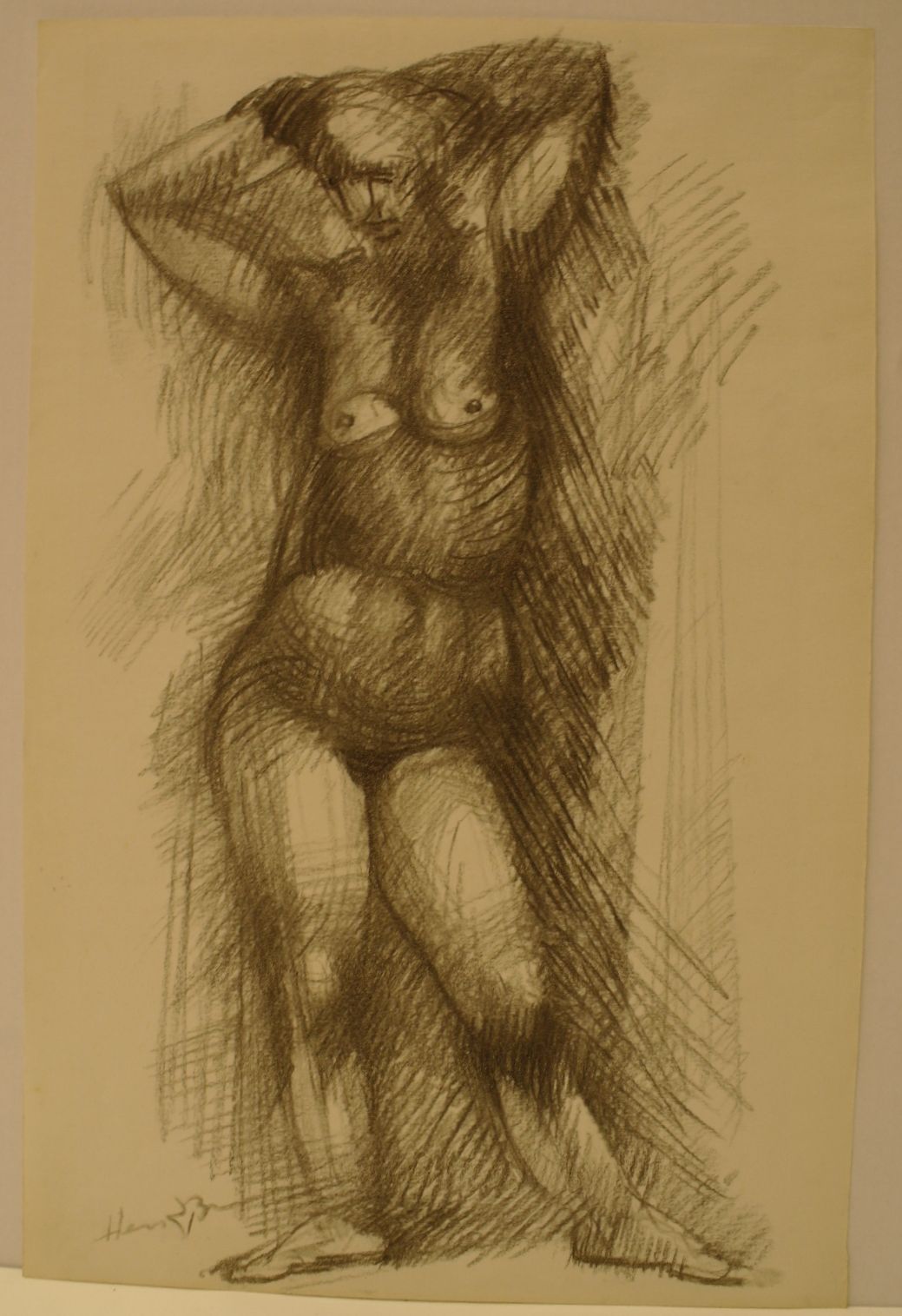 Staand naakt - 1975/1980, houtskool/papier, 494 x 310 mm, gesigneerd l.o.: Henk Br_______