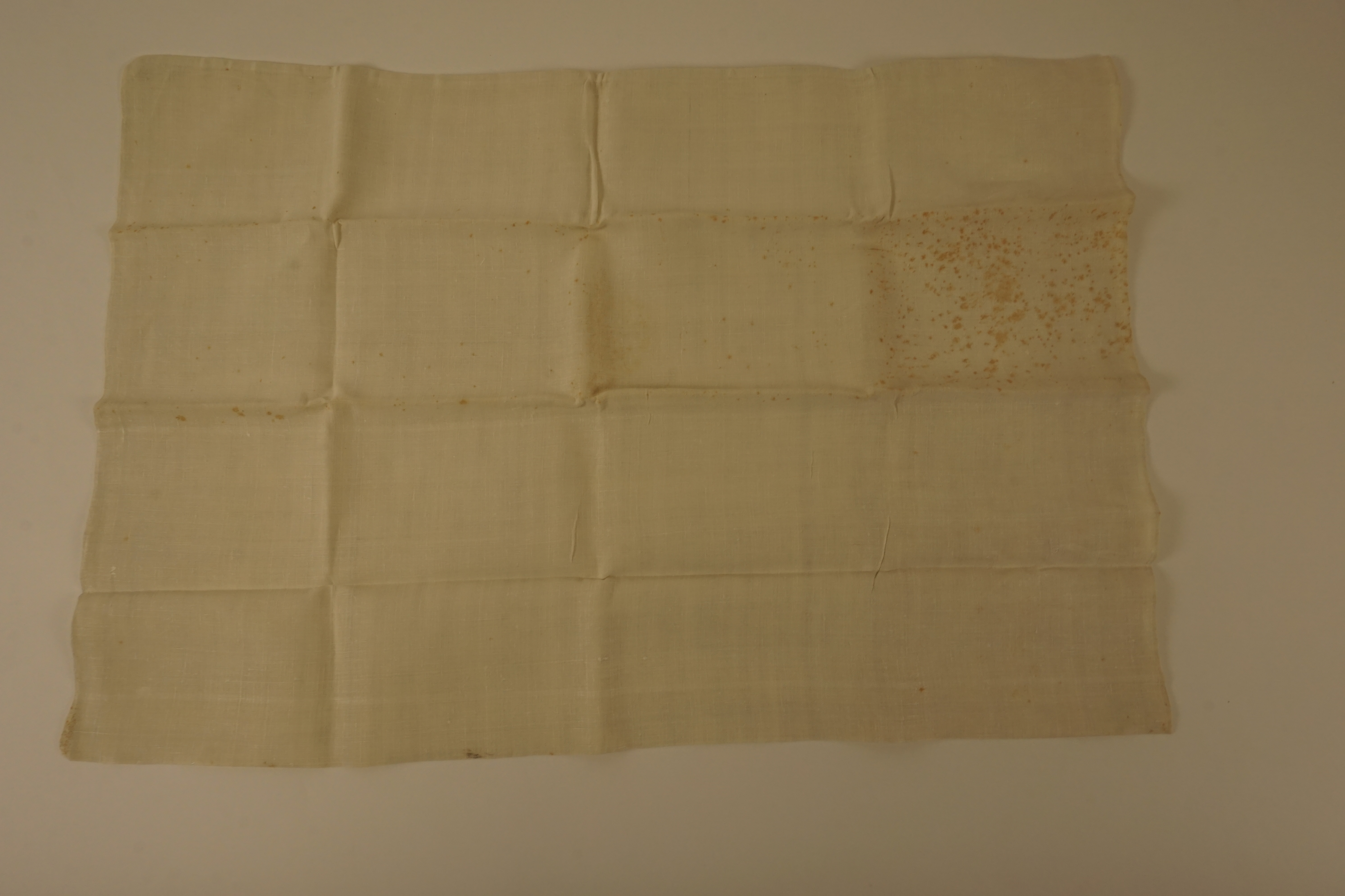 Sloop, materiaal: linnen, kleur: ecru, lengte 75 cm, breedte 51 cm, onderkant met de hand genaaid, zijkant naad machinaal, 4 linnen bandjes aan de binnenzijde