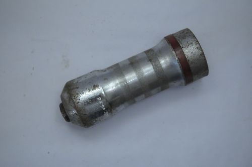 'All-rounder', cylindervormige metalen bus, maakt deel uit van schietmasker. Opschrift: 'Accles and Shelvoke Ltd, Birmingham, England Patent no 404051175'