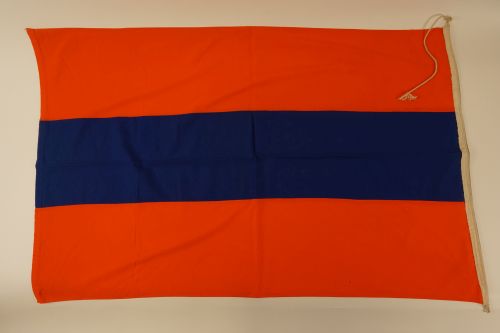 Vlag, carnavalsvlag van de FEC (Federatie van Eindhovense Carnavalsverenigingen), materiaal: gemengd, kleur: oranje/blauw, afmetingen: hoogte 91 cm, breedte 138 cm