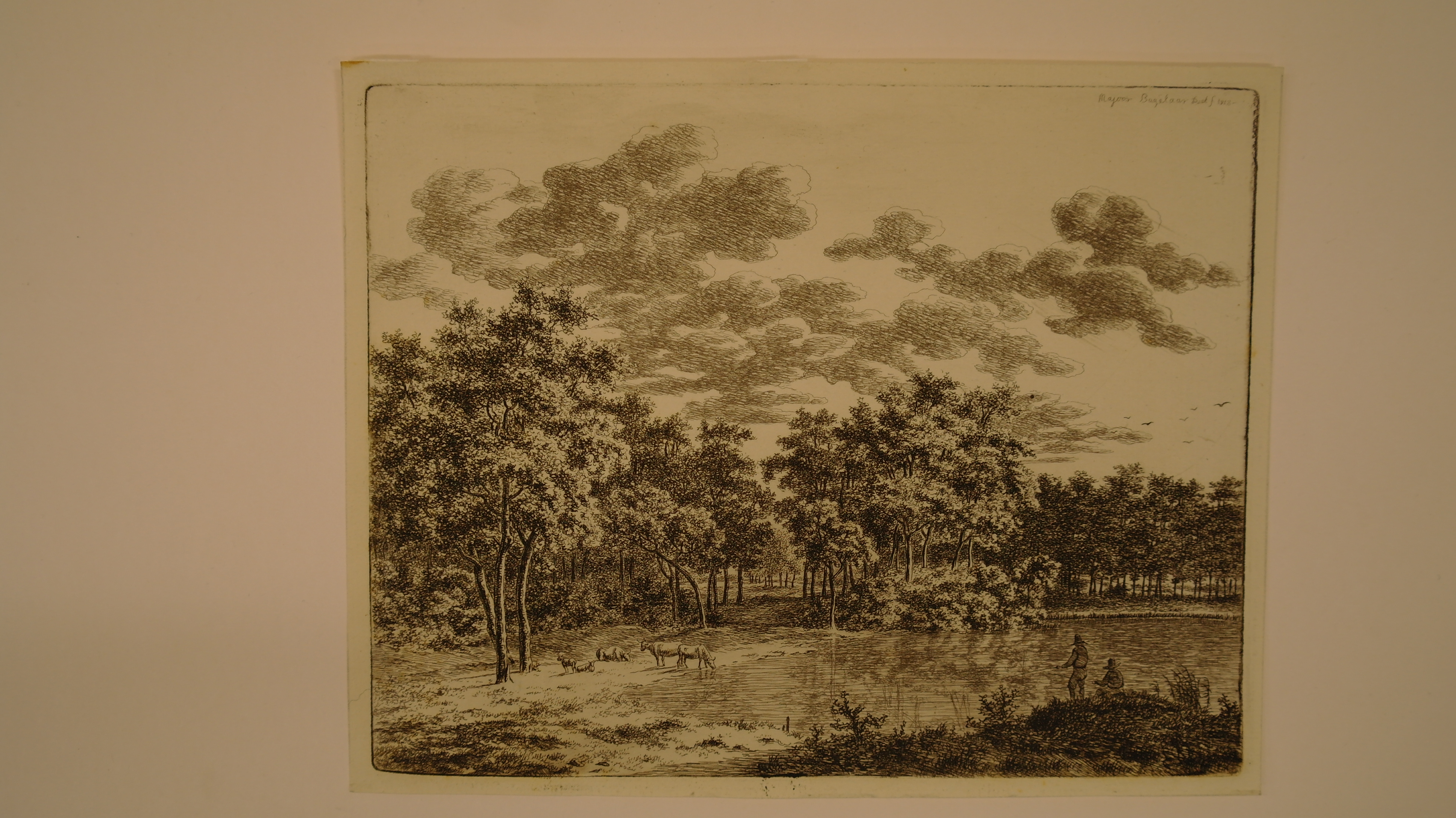Voor een bos staan twee vissers voor een water. gesigneerd en gedateerd r.b.: Majoor Bagelaar D. et f 1818. H&L (T. Hippert en J. Linnig) Le Peintre-graveur hollandais et belge du 19me siècle, 1879, nr. 141 op achterzijde stempels: BAG K.V. en Dubbel R.P.K.L.