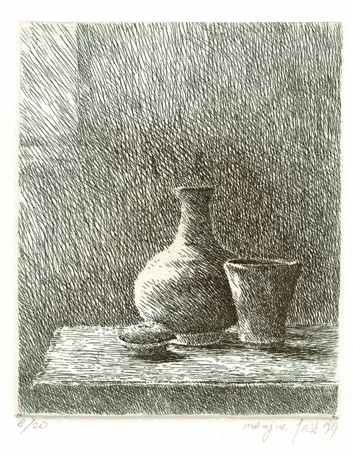 ets in groen en bruin/papier (8/20), onder plaat in potlood: 8/20 marijke fast '79 inv.nr sociale dienst: GW 3587
