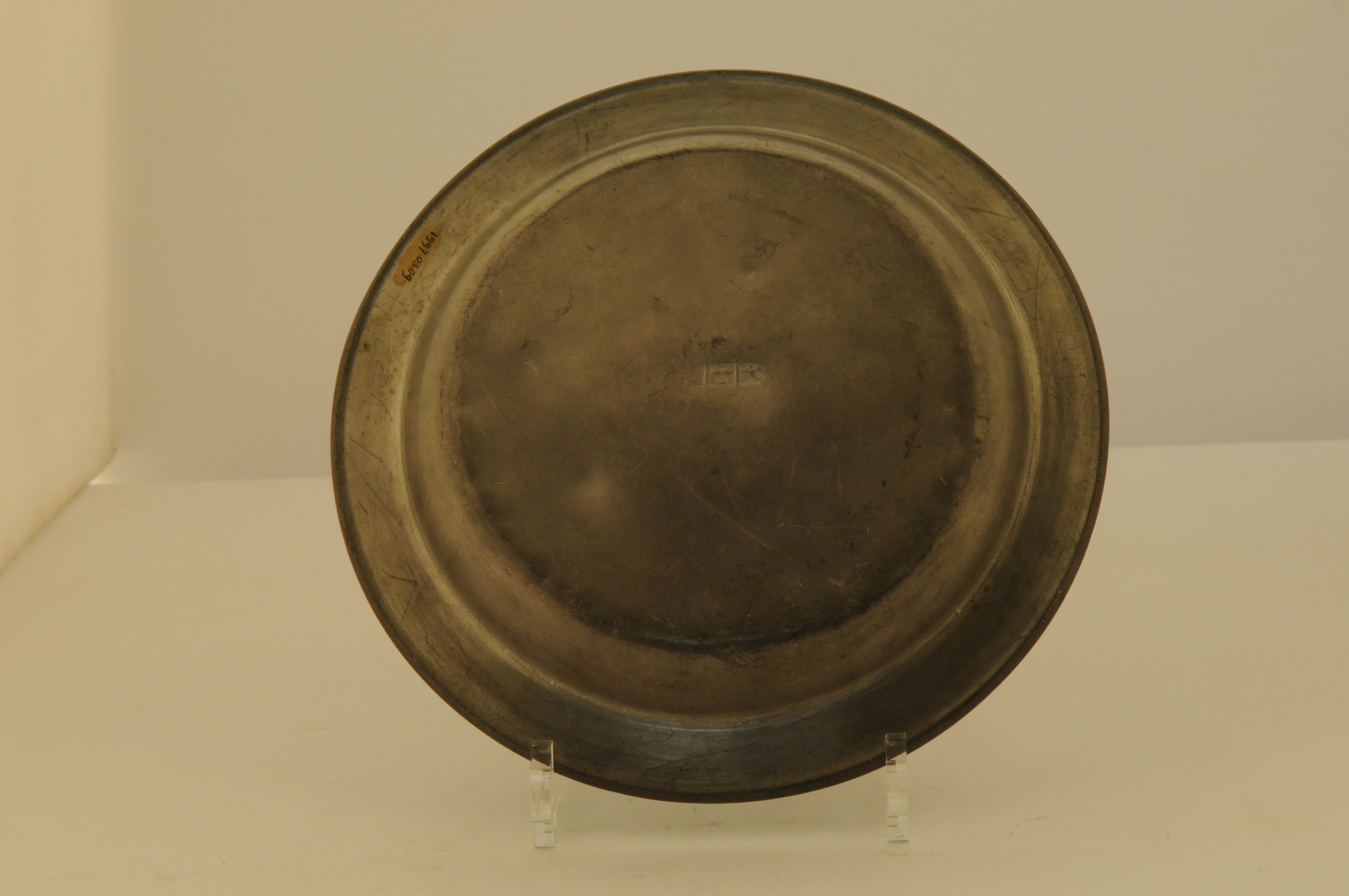gemerkt IFS (= Jan Francis Schutjes Eindhoven 1806-1883), naar links staande leeuw, drie hoorntjes, naar links staande engel (hoort bij 1997.03.02 t/m 1997.03.04 en 1997.03.07 t/m 1997.03.09)
