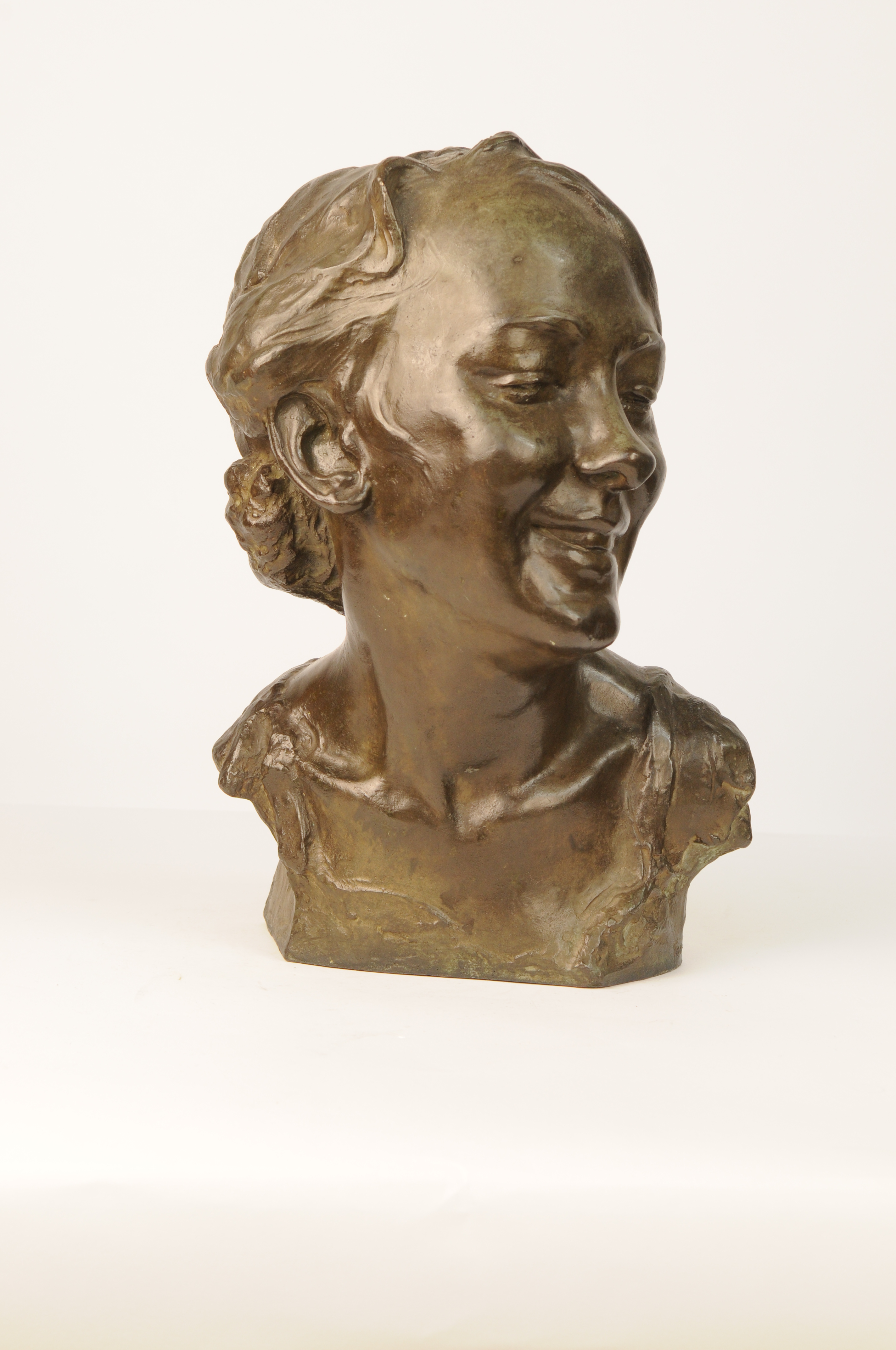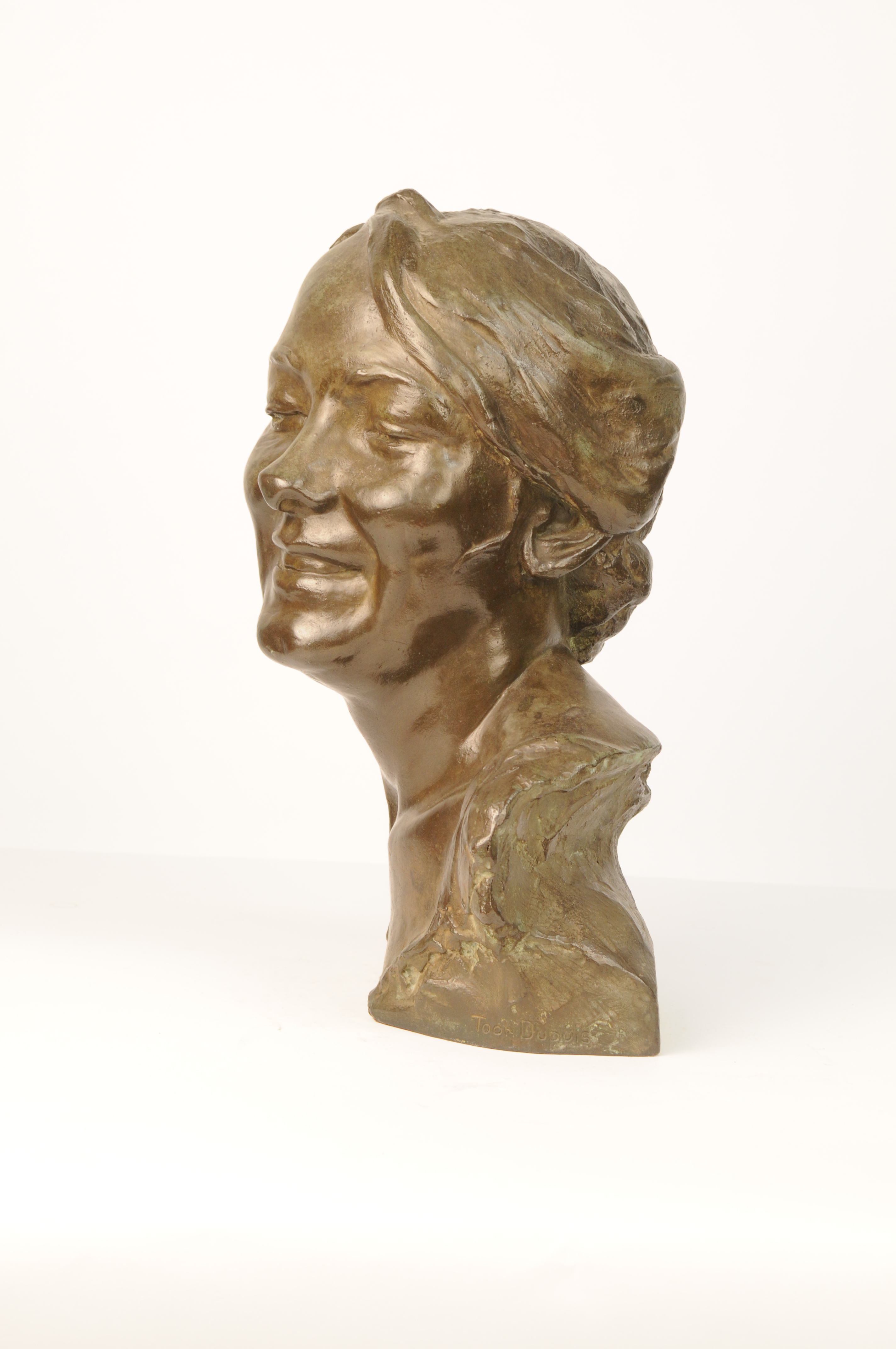 Lachende vrouw - z.j., brons (objet unique), 37,5 x 26 x 21,5 cm, gesigneerd: Toon Dupuis Lachende vrouw - omstreeks 1903. Brons (objet unique), 37,5 x 26 x 21,5 cm, gesigneerd: Toon Dupuis. gesigneerd r.z.: Toon Dupuis. uit privé-collectie Peter Thoben (ingeschreven september 1997)